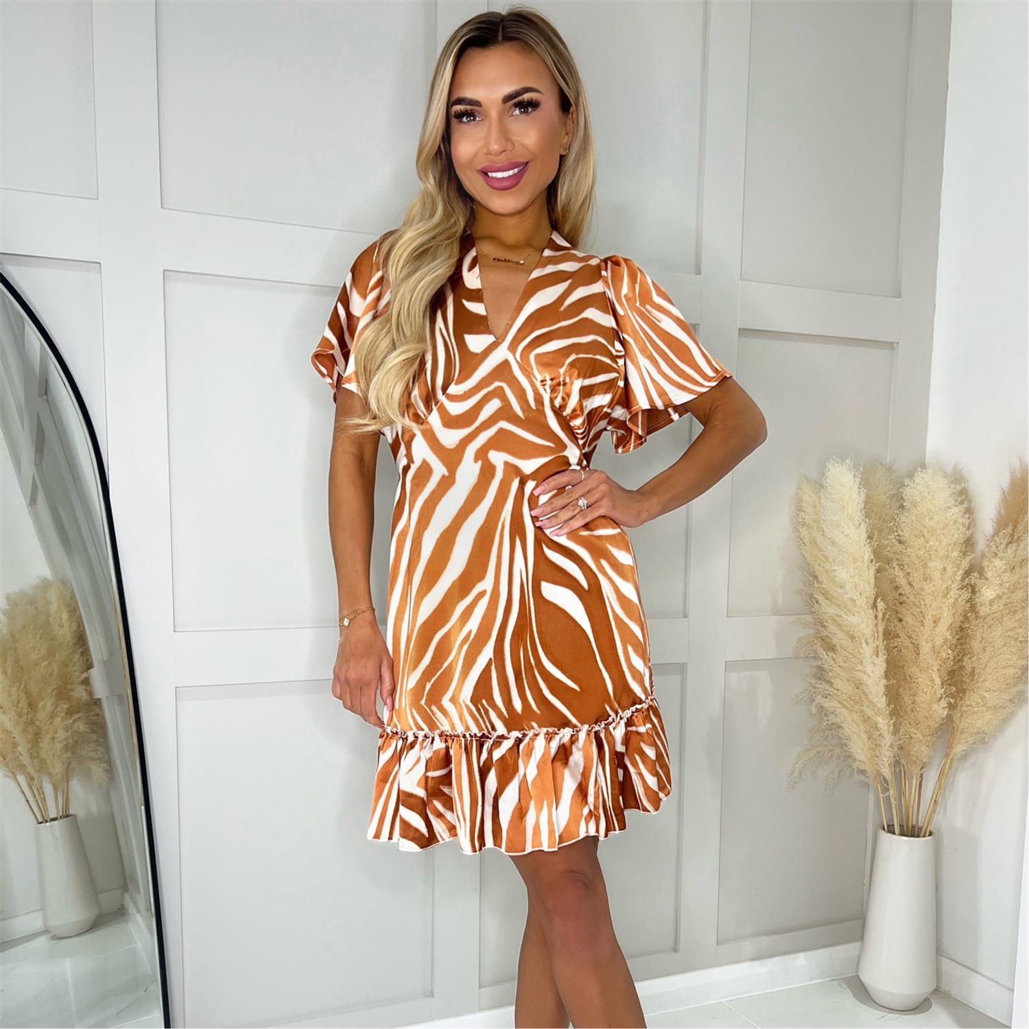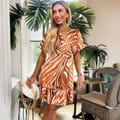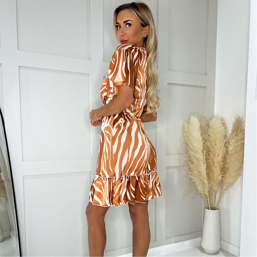 Our Rust Printed Short Sleeve V Neck Mini Dress is a must have this season! Featuring short butterfly sleeves, a v-neckline and a mini length skirt. This dress is perfect to style from day to night! Pair with some strappy heels or trainers and a denim jacket!