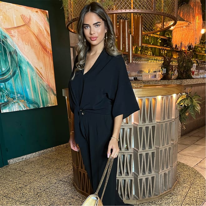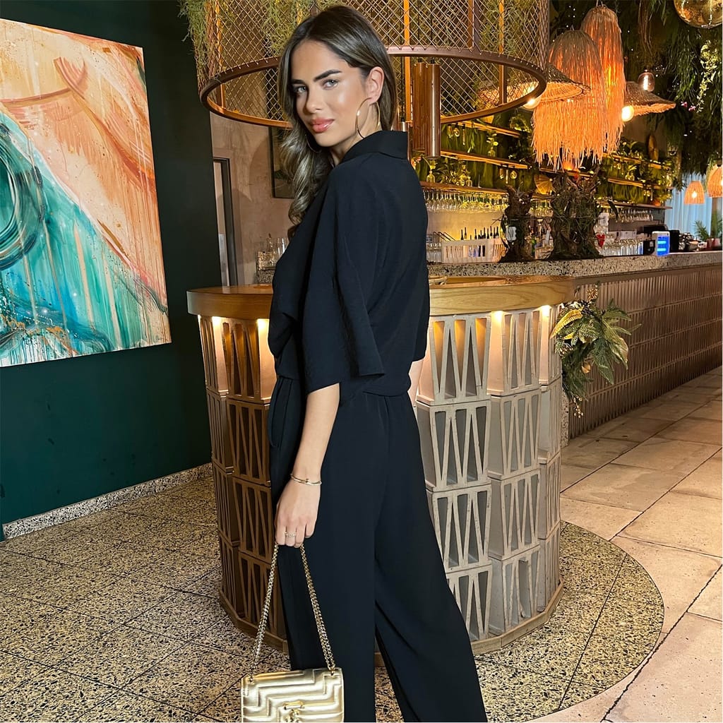 This Black V-Neck Collar Tie Front Shirt is so cute for a relaxed fit day time look with some jeans and sandals. For a more dressed up look pair with some statement earrings, black leathers and heels ready for a glam night out.