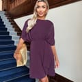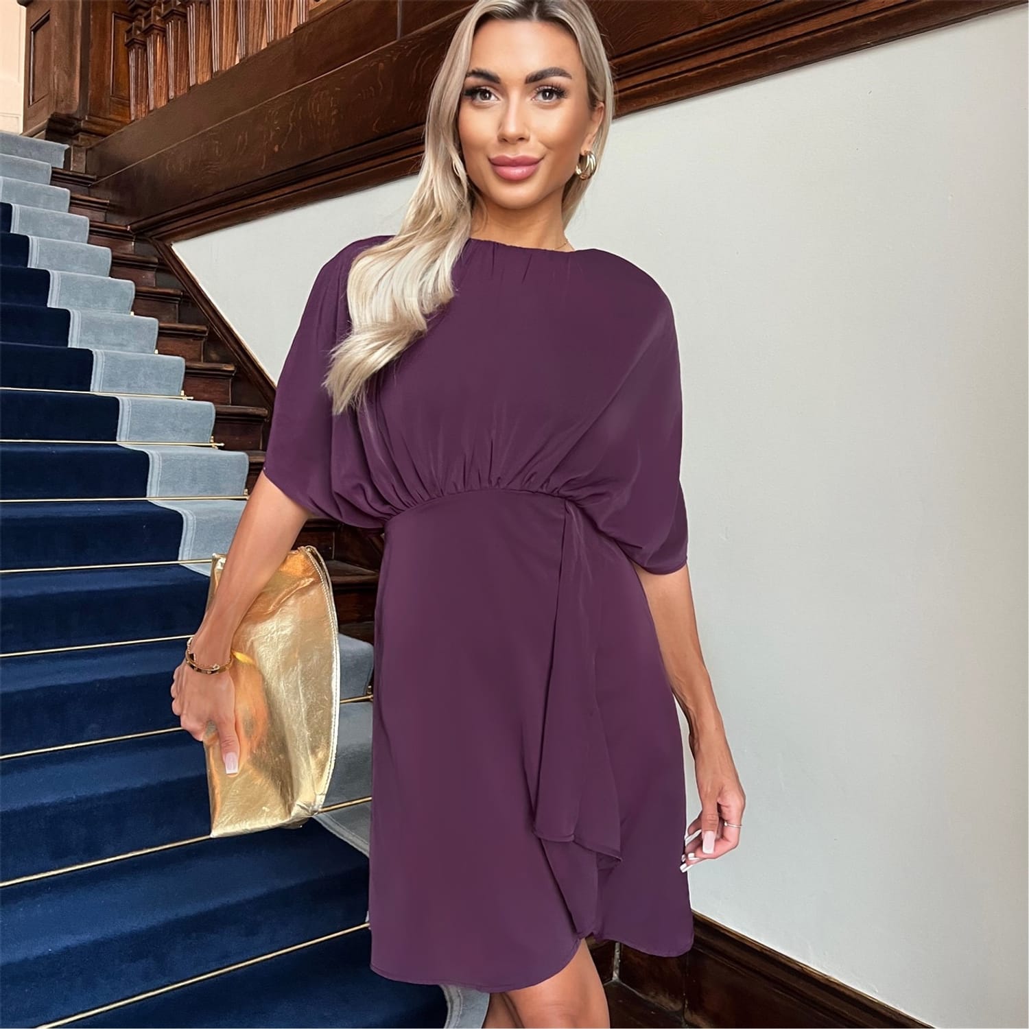 Effortlessly elegant this Batwing Gathered Top Mini Dress features subtle ruched shoulder detailing with batwing sleeves, a single button back fastening, elasticated waist back and a mini length wrap style skirt. Pair with strappy heels and minimal jewellery for special occasions.