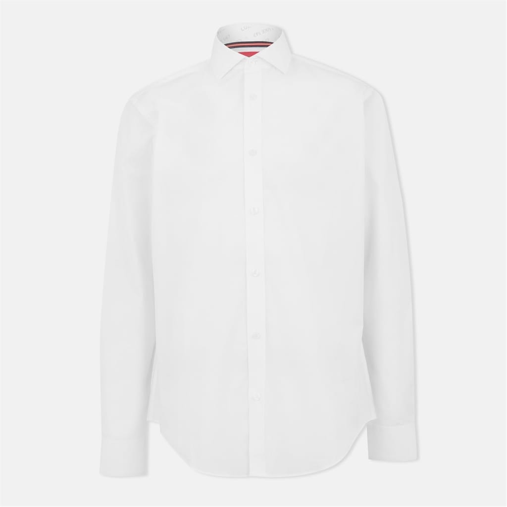 This Luke top is a formal piece featuring a solid pattern and long sleeves with cuff detailing. It has a button closure and a point collar, offering a regular fit. The design is completed with a subtle logo embellishment, adding a touch of brand identity. -