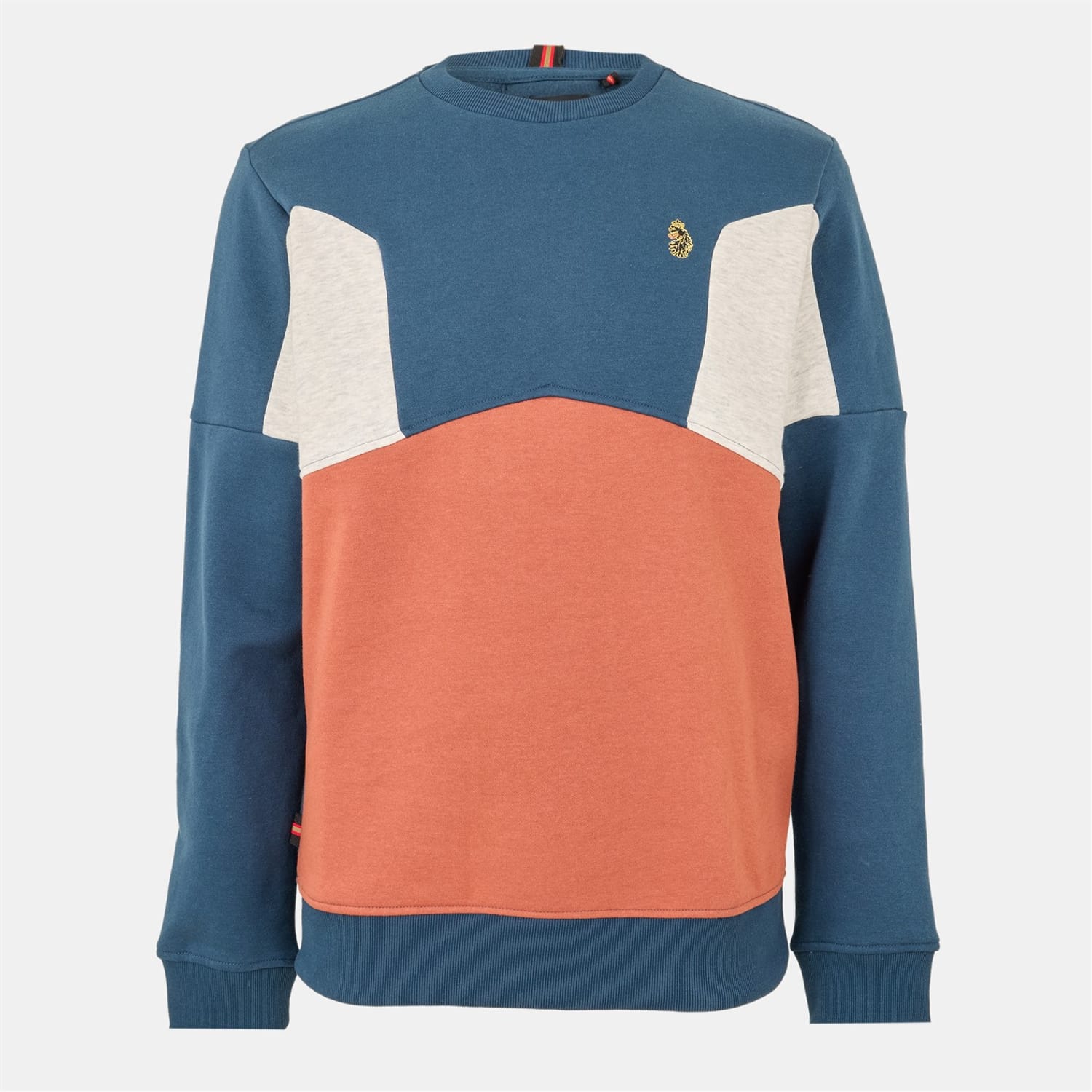 This Luke top features a striking color block pattern, perfect for casual wear. Designed with a crew neck and long sleeves, it offers a regular fit for comfort. The ribbed cuffs add a touch of detail, while the logo embellishment subtly showcases the brand's identity. -