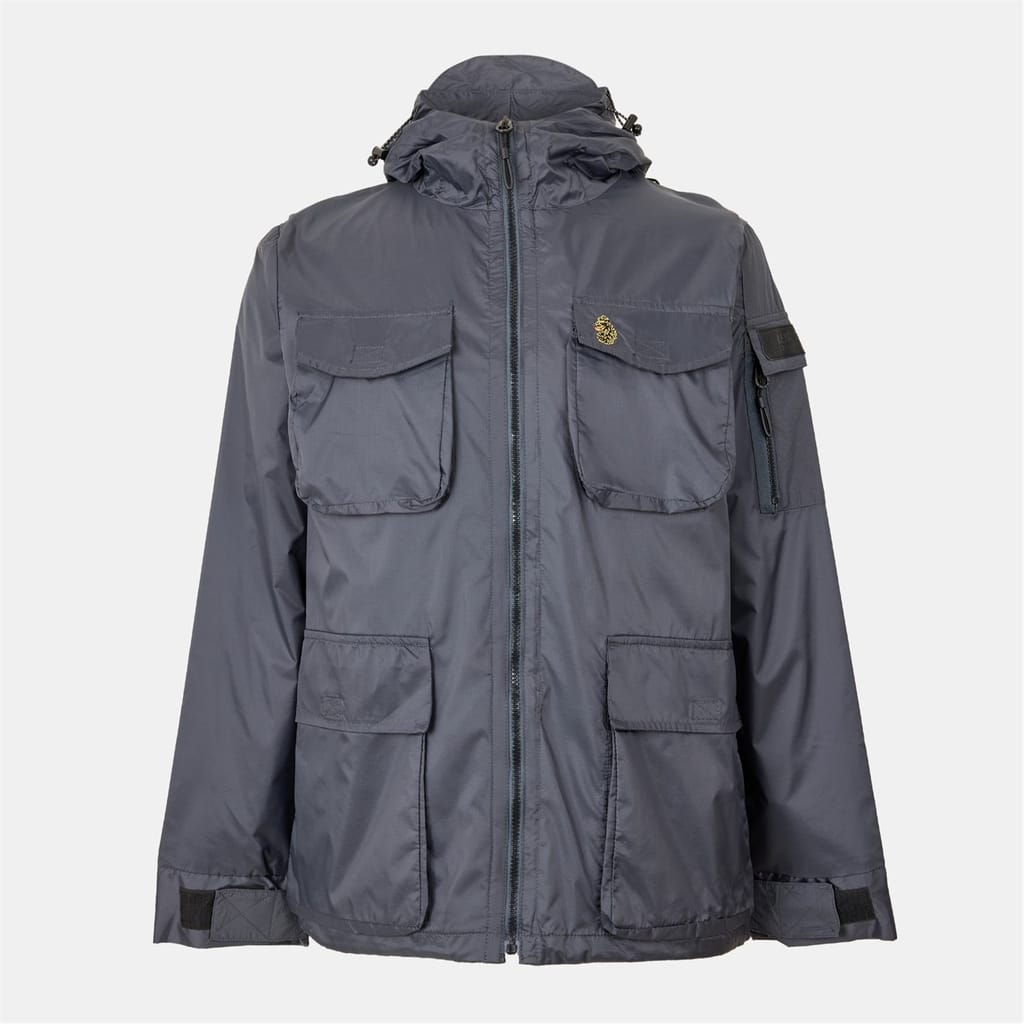 This Luke softshell jacket features a hooded neck and a regular fit, offering both style and comfort. The jacket is designed with a zipper closure and elasticated cuffs for a secure fit. It includes practical embellishments such as a logo, chest pocket, and zipped pocket, all set against a solid pattern. The straight hem adds a clean finish to this versatile piece. -