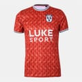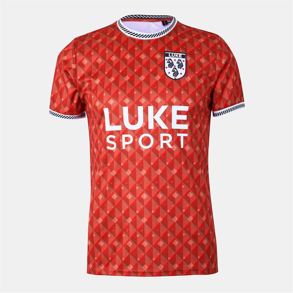This Luke top features a regular fit with a geometric pattern and short sleeves. The crew neck and ribbed collar add a classic touch, while the ribbed cuffs ensure comfort. Embellished with a logo and lettering graphic, this top combines style and brand identity seamlessly. -