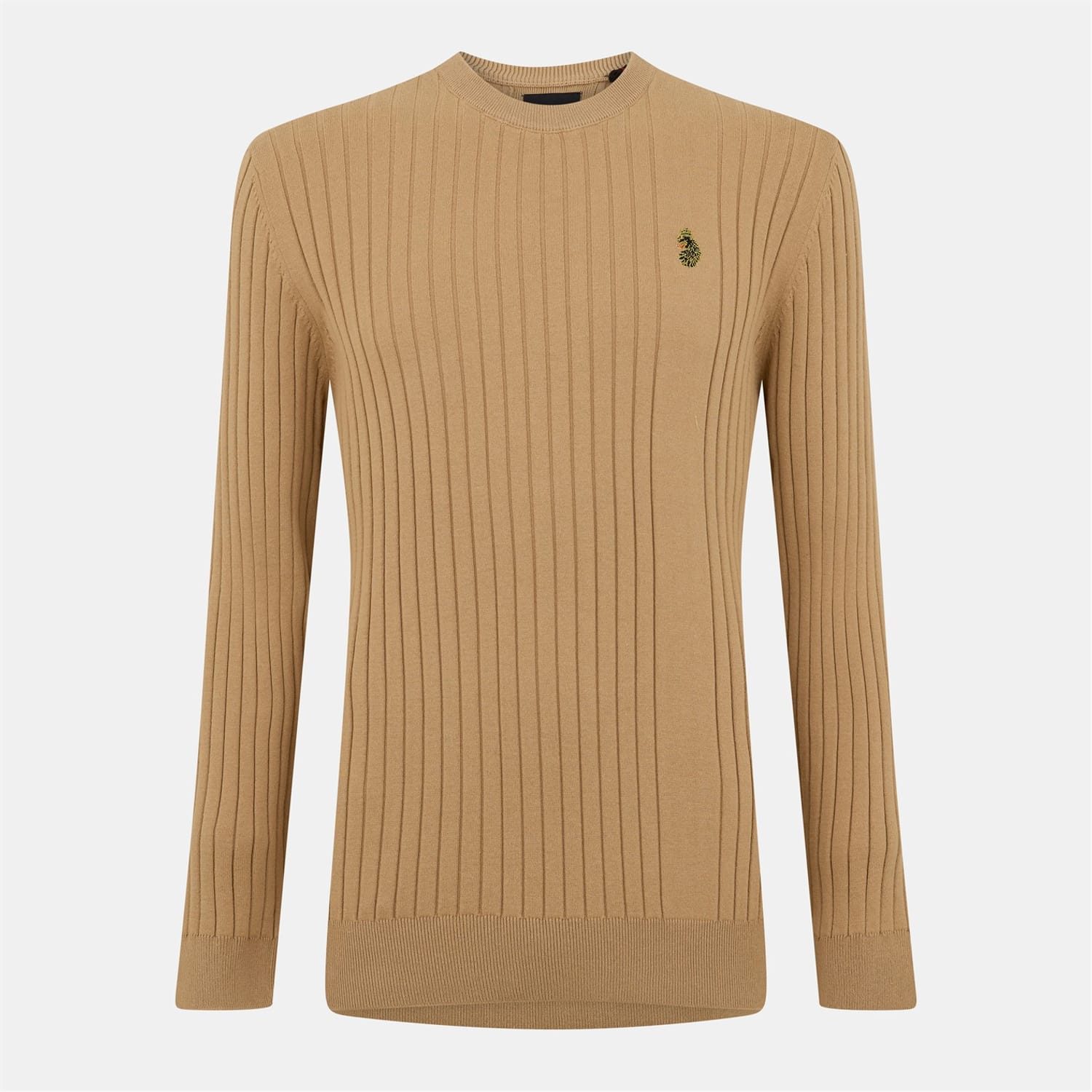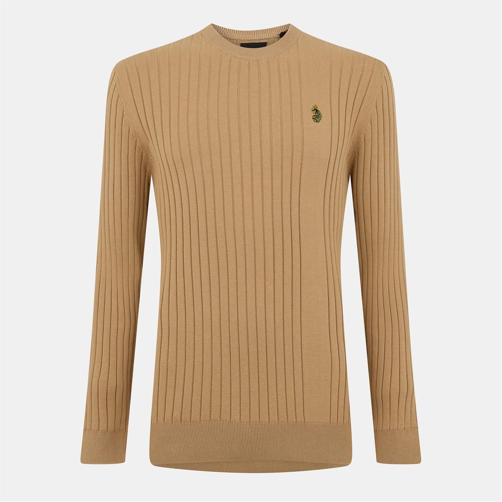 Discover the Luke knit top, featuring a slim fit and long sleeves. This piece is designed with a ribbed pattern, complemented by a ribbed collar and cuffs. The crew neck adds a classic touch, while the logo embellishment provides a subtle brand statement. -