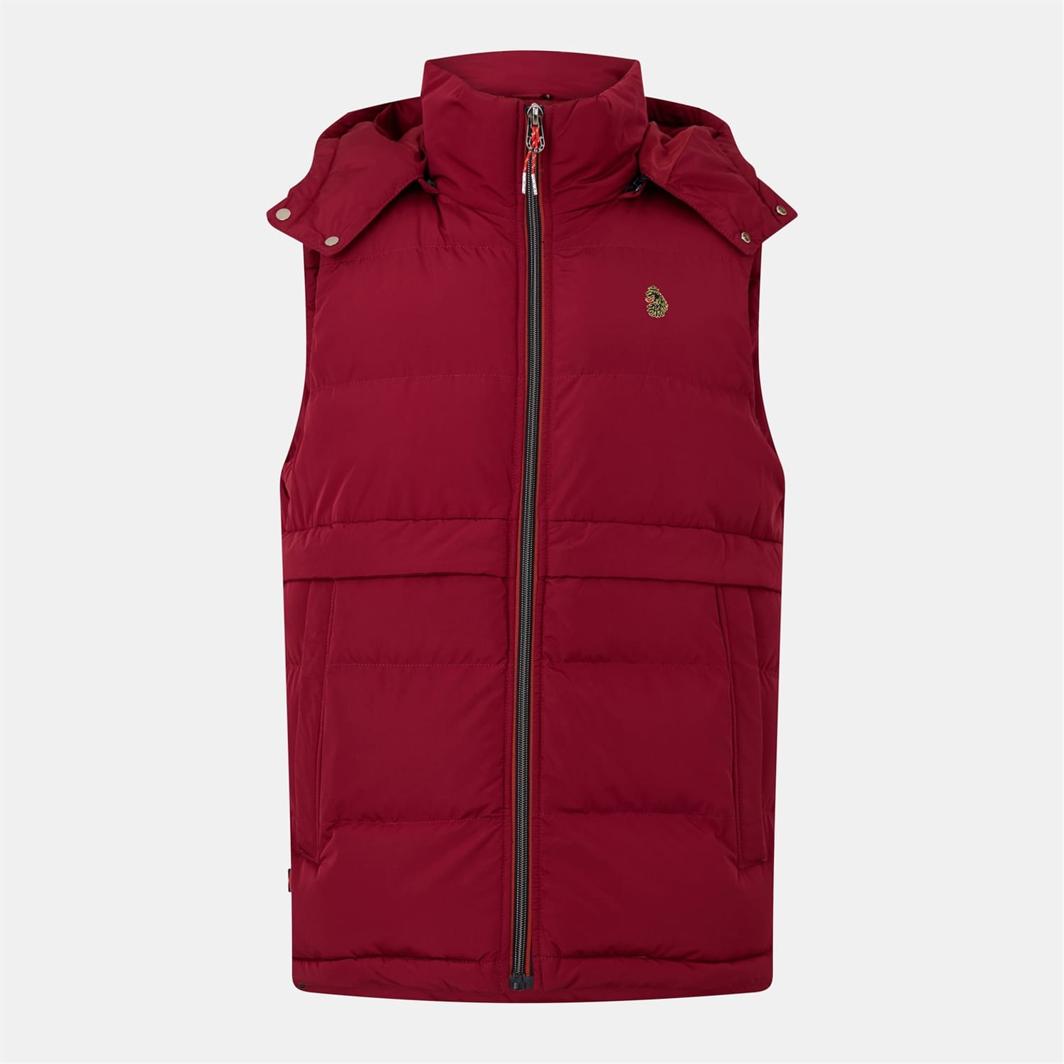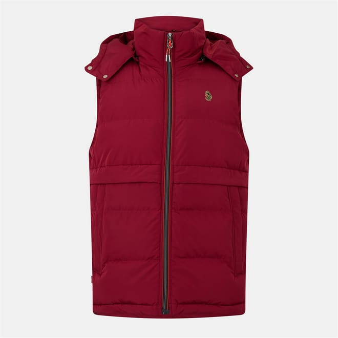 This Luke quilted gilet features a solid pattern and a convenient zipper closure. The design is enhanced with a hooded neckline and a subtle logo embellishment, offering a stylish yet functional layer for your wardrobe. -