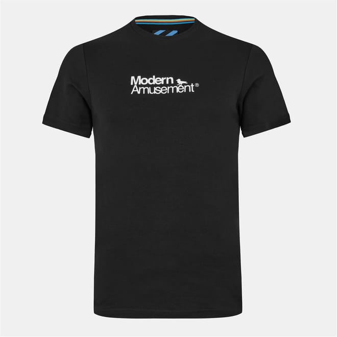 This Modern Amusement top is a casual staple featuring a regular fit and short sleeves. The crew neck design is complemented by a graphic pattern with distinctive lettering. A subtle logo embellishment adds a touch of brand identity, making it a versatile choice for everyday wear. -