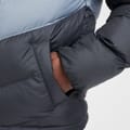 This Nike puffer jacket is designed for those who appreciate style and functionality. Featuring a hooded neckline and a zipper closure, it offers a regular fit with a colour block pattern. The jacket is embellished with a logo, adding a touch of brand identity. Its heavy weight ensures warmth and comfort, making it a practical choice for colder seasons. -