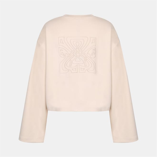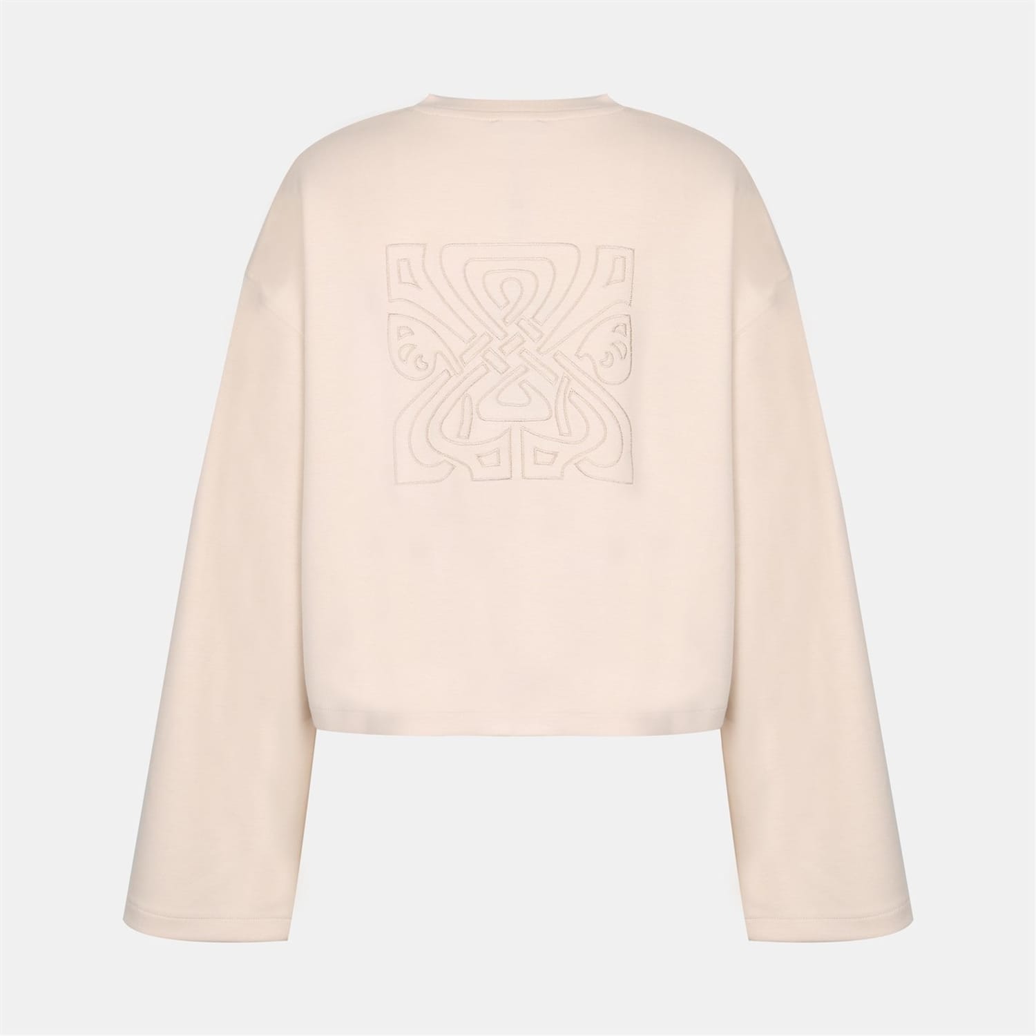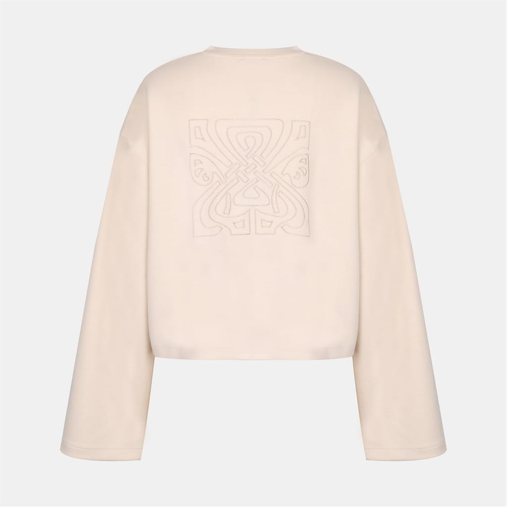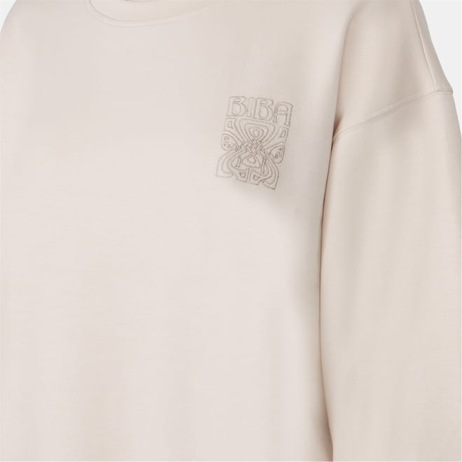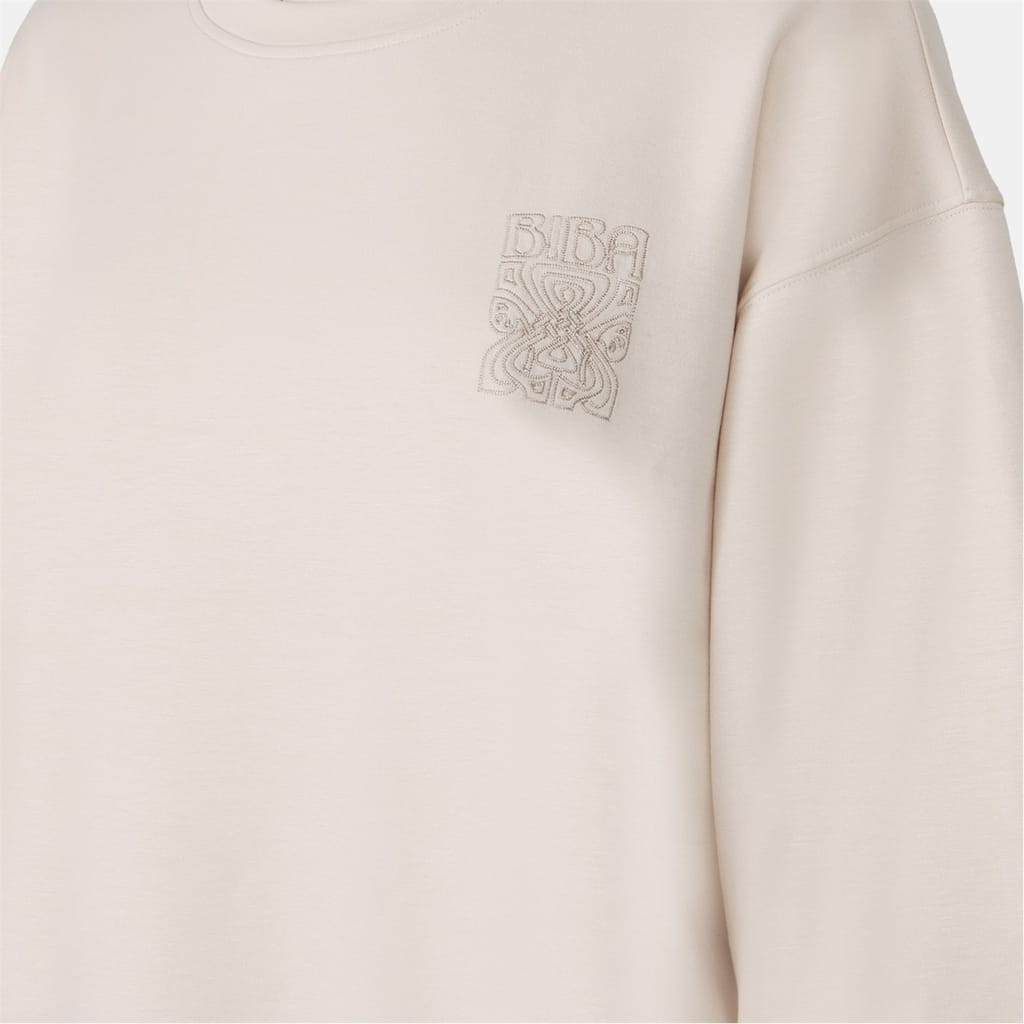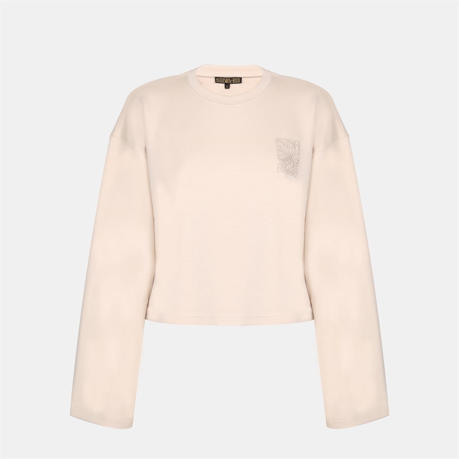 This Biba top features a crew neck and a cropped length, offering a modern twist to your wardrobe. The solid pattern and regular fit ensure a classic look, while the long sleeves with drop shoulder style add a touch of relaxed elegance. A subtle logo embellishment completes the design, making it a versatile choice for various occasions. -