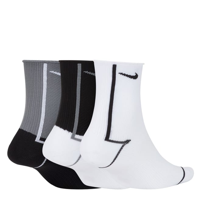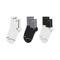 Nike quarter trainer socks are designed for activewear enthusiasts. Featuring a stylish color block pattern, these socks offer a comfortable fit for your workouts. The iconic logo embellishment adds a touch of brand recognition, making them a perfect choice for those who value both performance and style. -