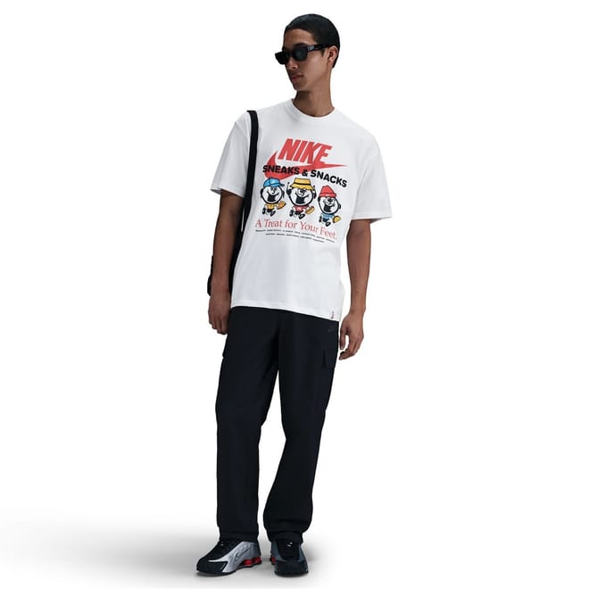 This Nike top is a casual essential, featuring a regular fit and short sleeves. The crew neck design is complemented by a striking graphic print, while the iconic logo adds a touch of brand recognition. Perfect for everyday wear, this top combines style and comfort effortlessly. -