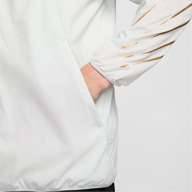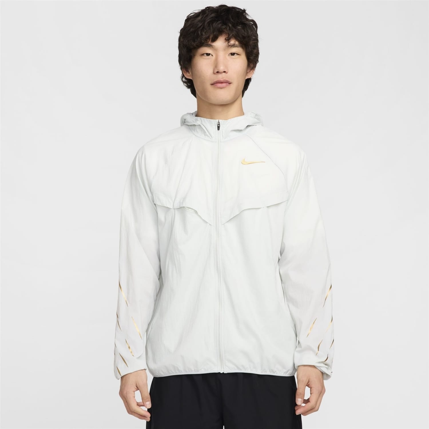 This Nike performance jacket from the activewear collection features a hooded design with a zipper closure. It offers a regular fit and includes practical embellishments like a logo and pockets. The jacket is crafted with a solid pattern, elasticated cuffs, and a straight hem, making it a versatile choice for various activities. -