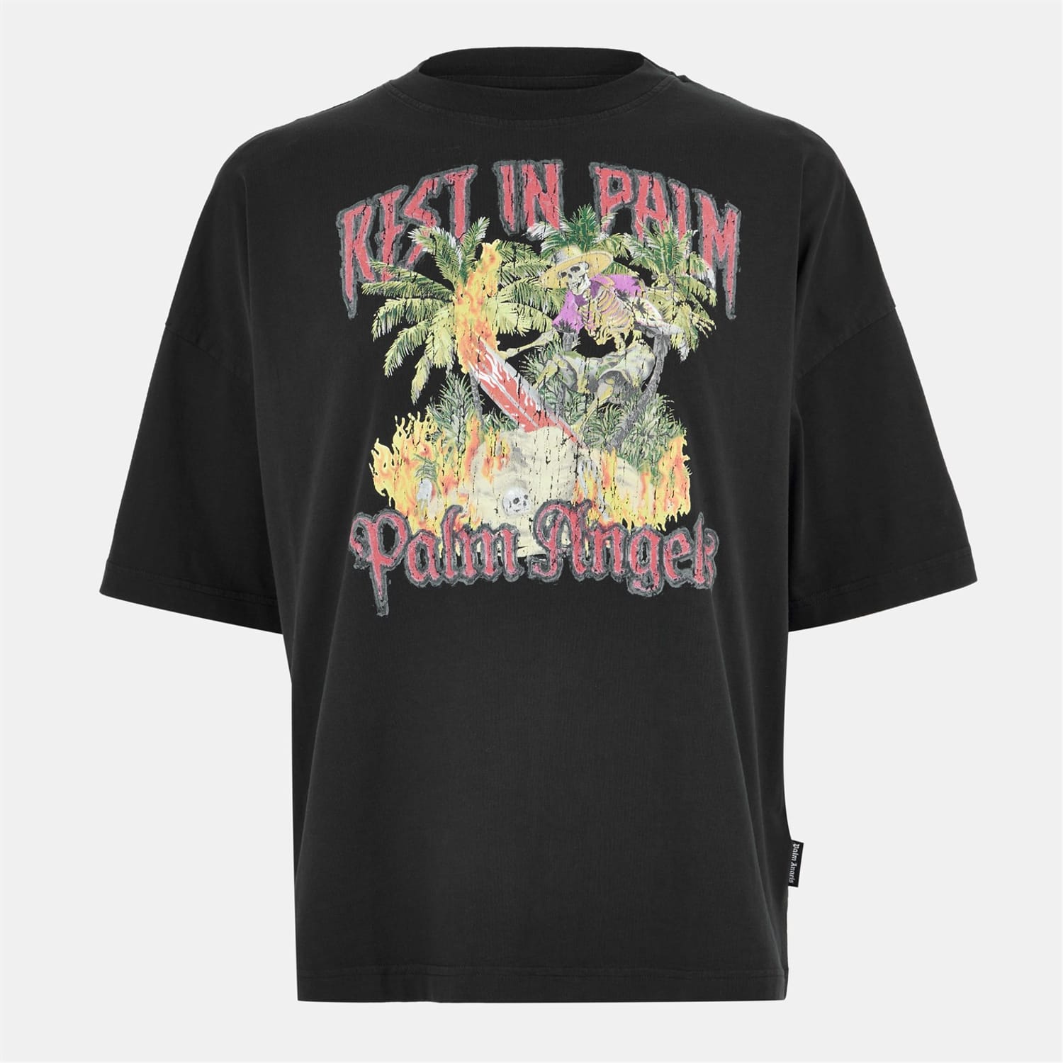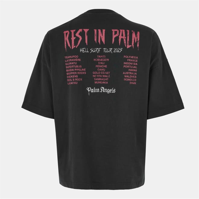 This Palm Angels top features an oversized fit with a crew neck and short sleeves. The drop shoulder design adds a relaxed touch, while the graphic print makes a bold statement. Perfect for those who appreciate unique style and comfort. -