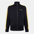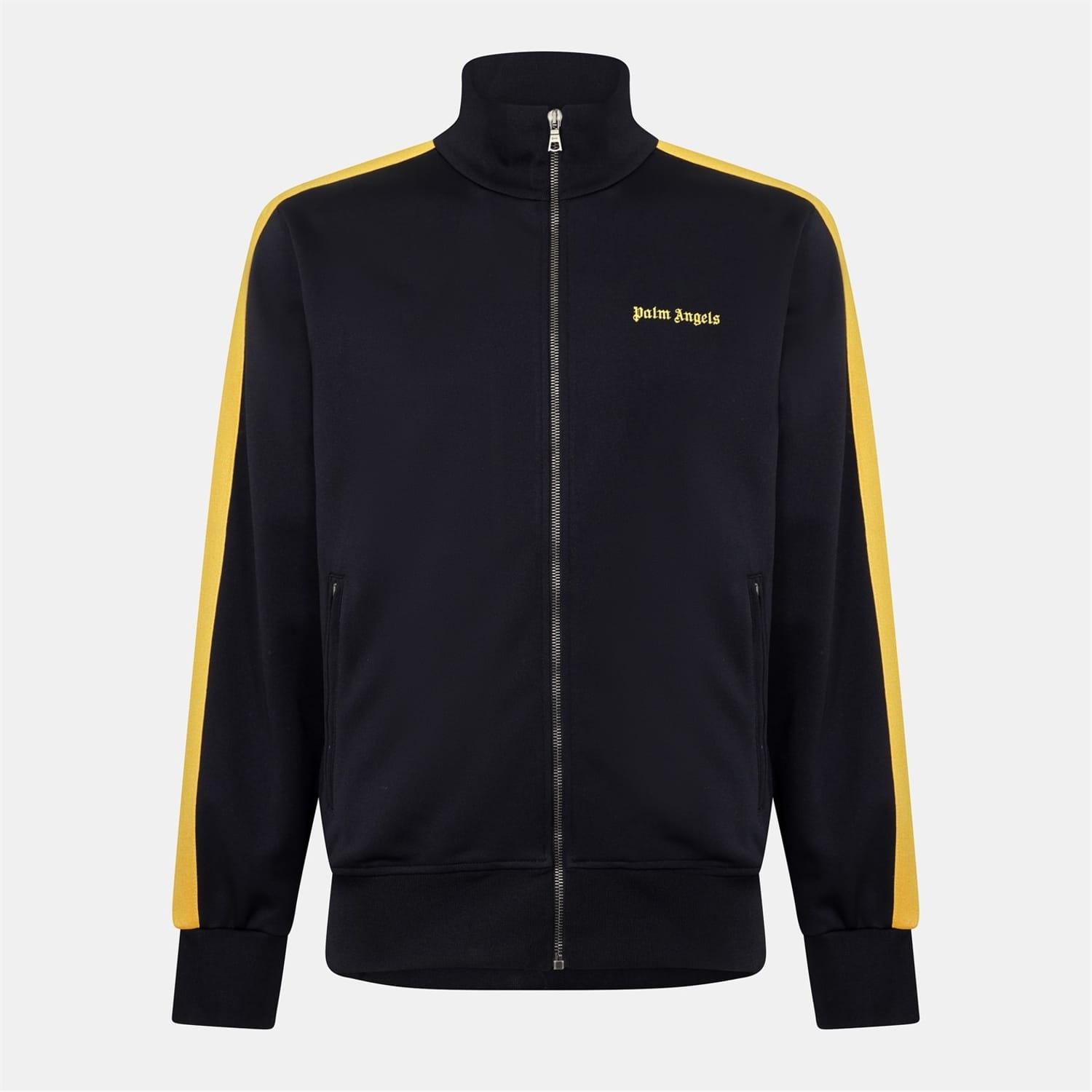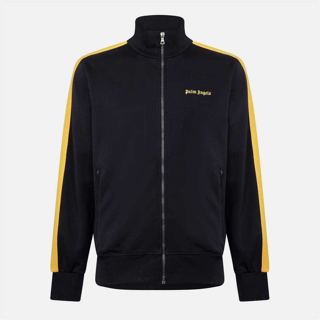 This Palm Angels track jacket features a sleek solid design with a convenient zipper closure. Crafted for a modern look, it embodies the brand's signature style, making it a versatile addition to any wardrobe. -