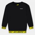 This Off White top features a solid pattern with a crew neck and long sleeves. Designed in a regular fit, it includes ribbed cuffs and a ribbed collar for added comfort. The top is embellished with a logo, adding a distinctive touch to its minimalist design. -