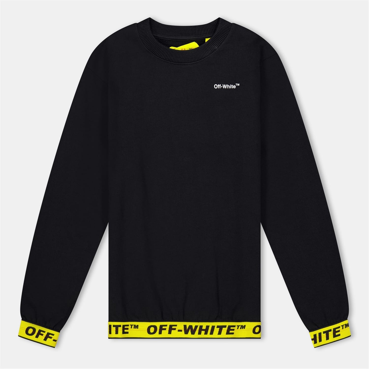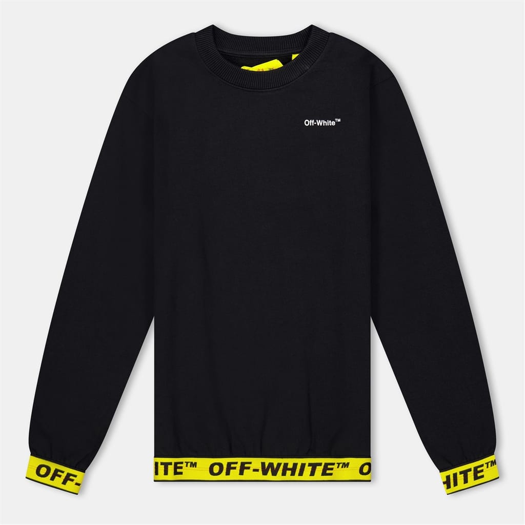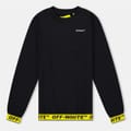 This Off White top features a crew neck and long sleeves with ribbed cuffs. Designed in a regular fit, it showcases a solid pattern and is embellished with a logo for a distinctive touch. -
