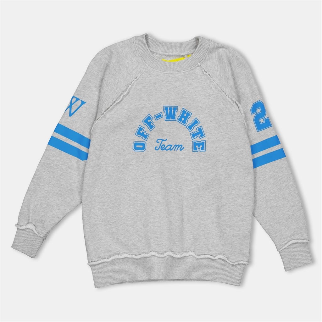 This Off White top features a crew neck and long raglan sleeves, offering a regular fit. The ribbed collar and cuffs add a touch of detail, while the graphic print and lettering embellishments enhance its style. A printed logo completes the design, making it a distinctive choice for those who appreciate unique fashion. -