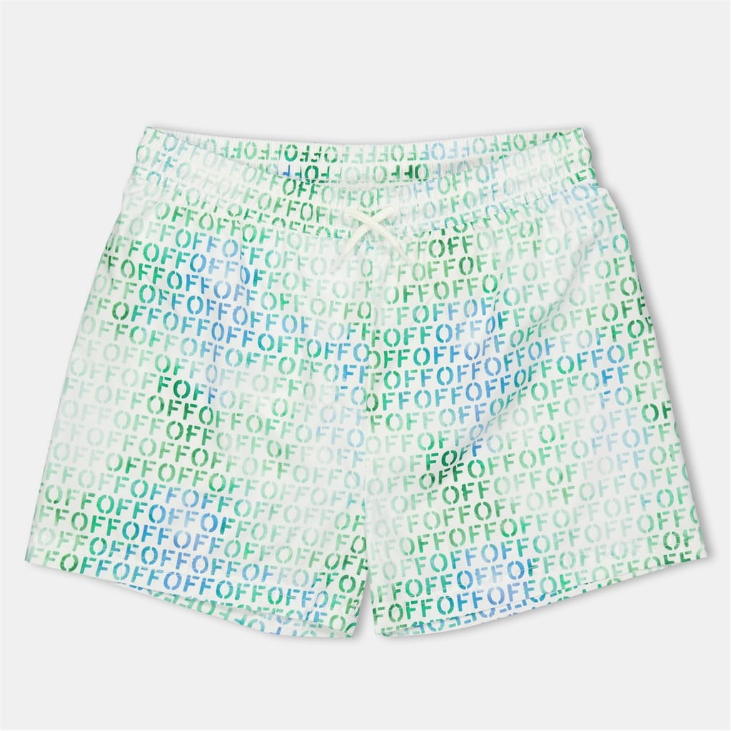 Dive into style with Off White swimwear. These swim bottoms are perfect for swimming, featuring an all-over logo pattern and distinctive lettering graphic. The drawstring closure ensures a secure fit, making them a practical choice for your aquatic activities. -