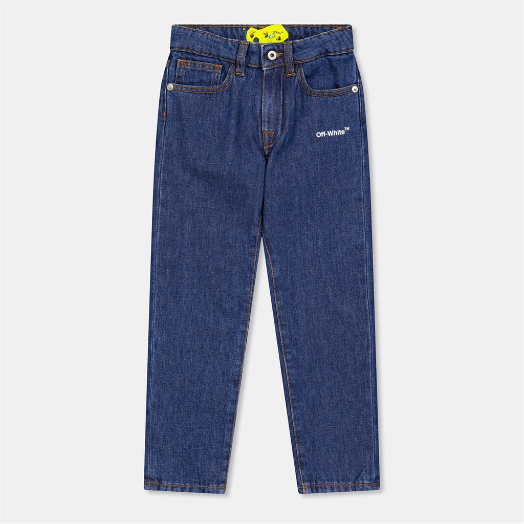Discover Off White jeans featuring a straight fit and a classic five-pocket design. These jeans come with a button and zip fly closure, ensuring a secure fit. The casual collection piece is adorned with a subtle logo embellishment, adding a touch of brand identity to your wardrobe. -