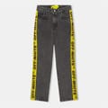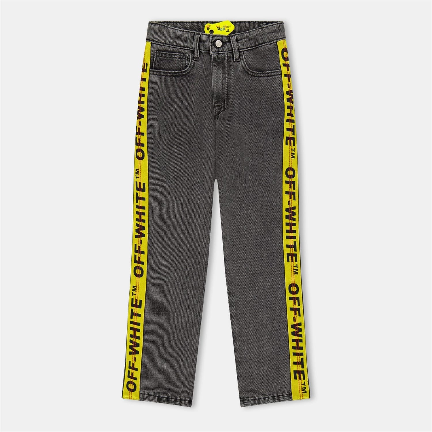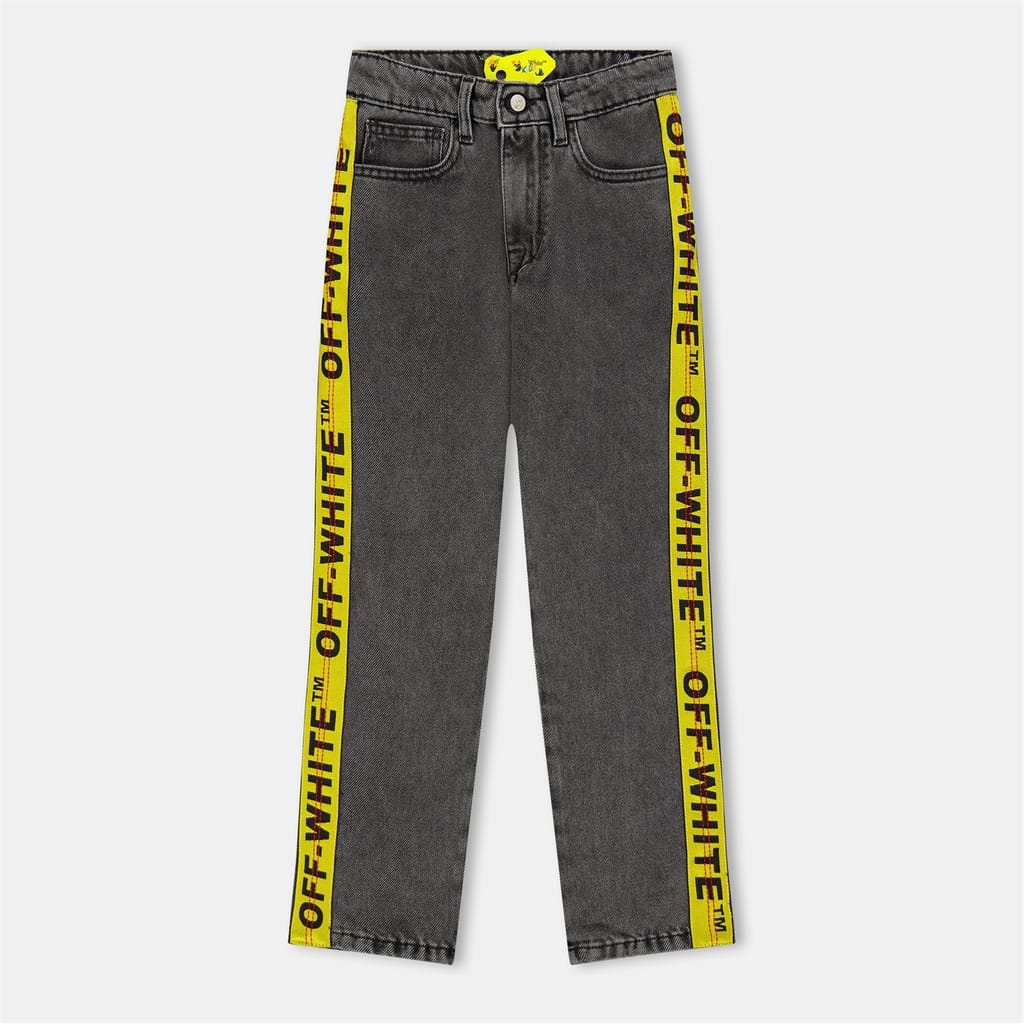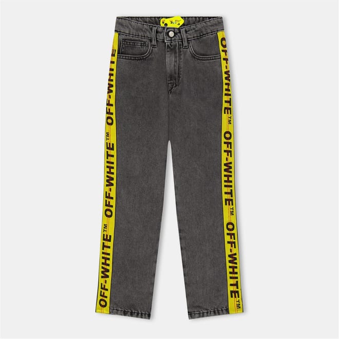 Discover Off White jeans featuring a straight fit and a five-pocket design. These jeans are adorned with a graphic print and lettering, adding a unique touch to your wardrobe. The button and zip fly closure ensures a secure fit, while the iconic logo embellishment completes the look with a signature style. -