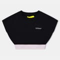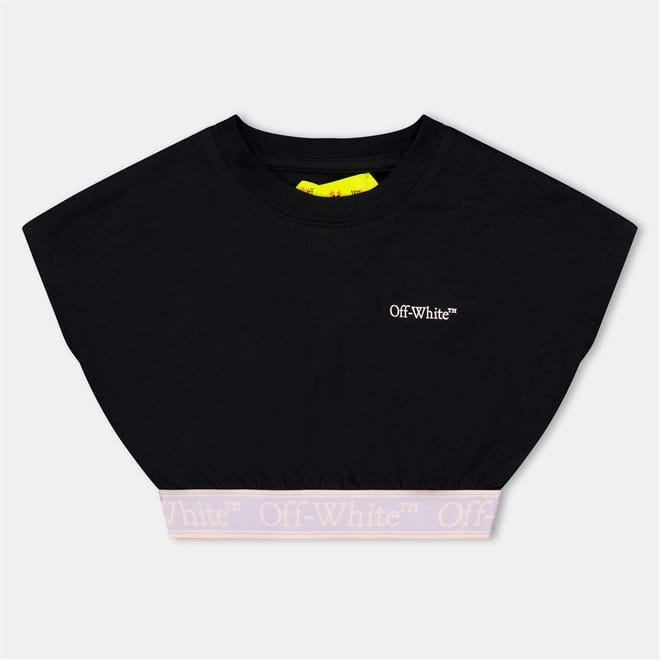 Discover the Off White sleeveless top, a perfect addition to your casual collection. This solid cropped piece features a crew neck and a regular fit, offering both comfort and style. The iconic logo embellishment adds a distinctive touch, making it a standout choice for any wardrobe. -
