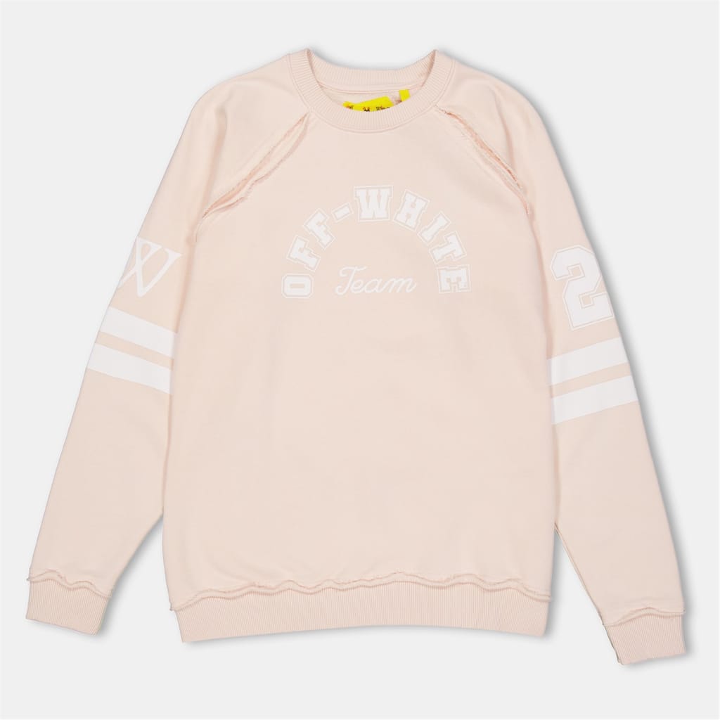 This Off White top features a crew neck and long raglan sleeves, offering a regular fit. The ribbed collar and cuffs add a touch of detail, while the graphic print and lettering embellishments enhance its style. A printed logo completes the design, making it a distinctive choice for those who appreciate unique fashion. -