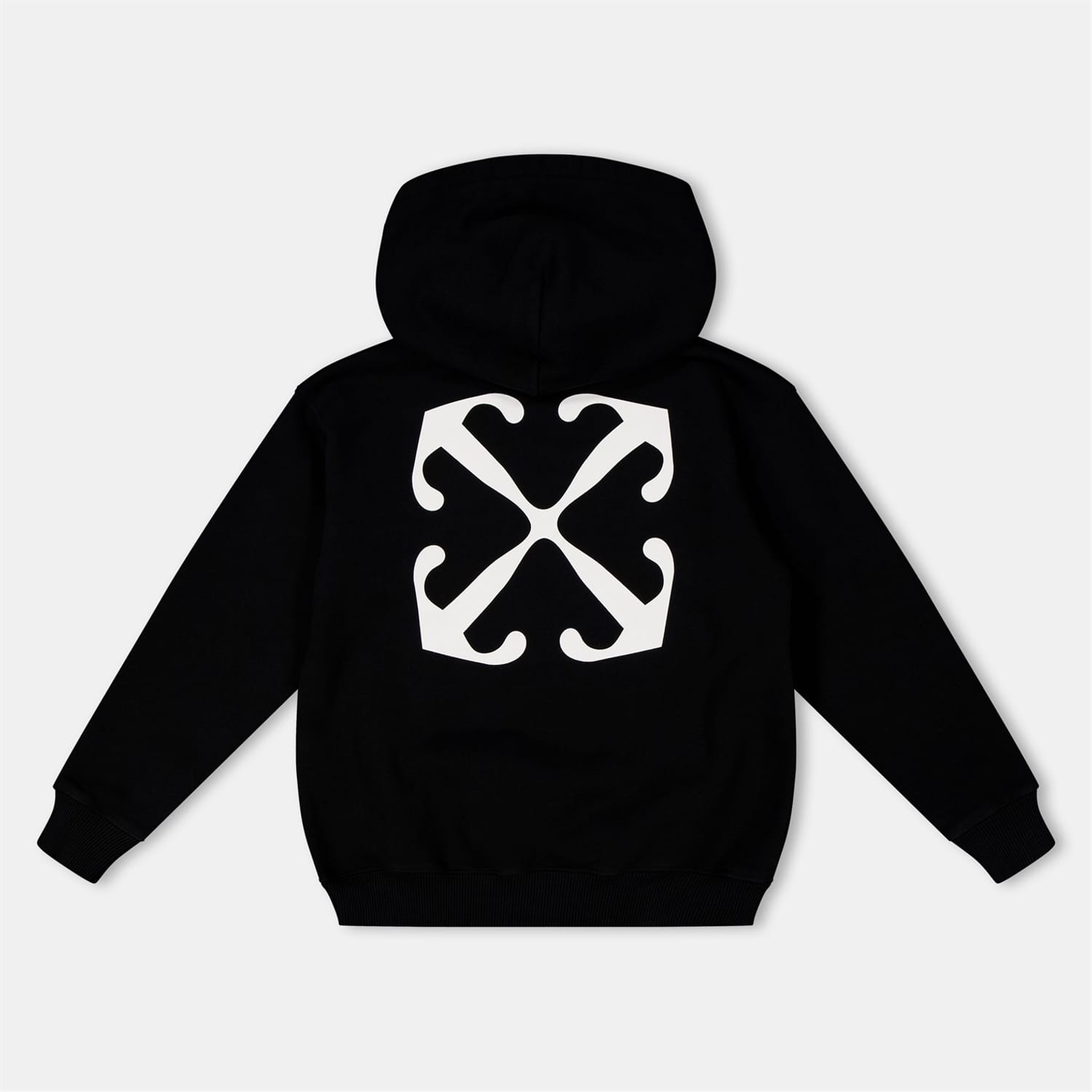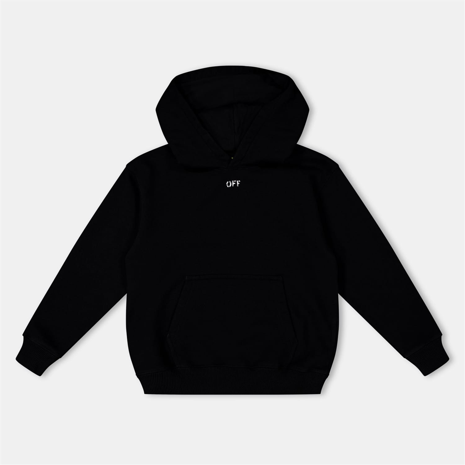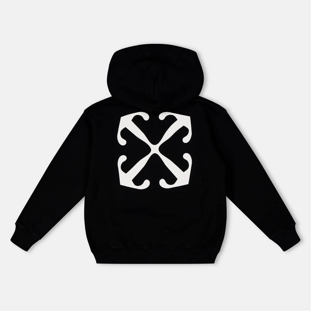 This Off White top features a hooded neck and long sleeves with ribbed cuffs. It showcases a large genie graphic print and a logo embellishment, offering a regular fit. -