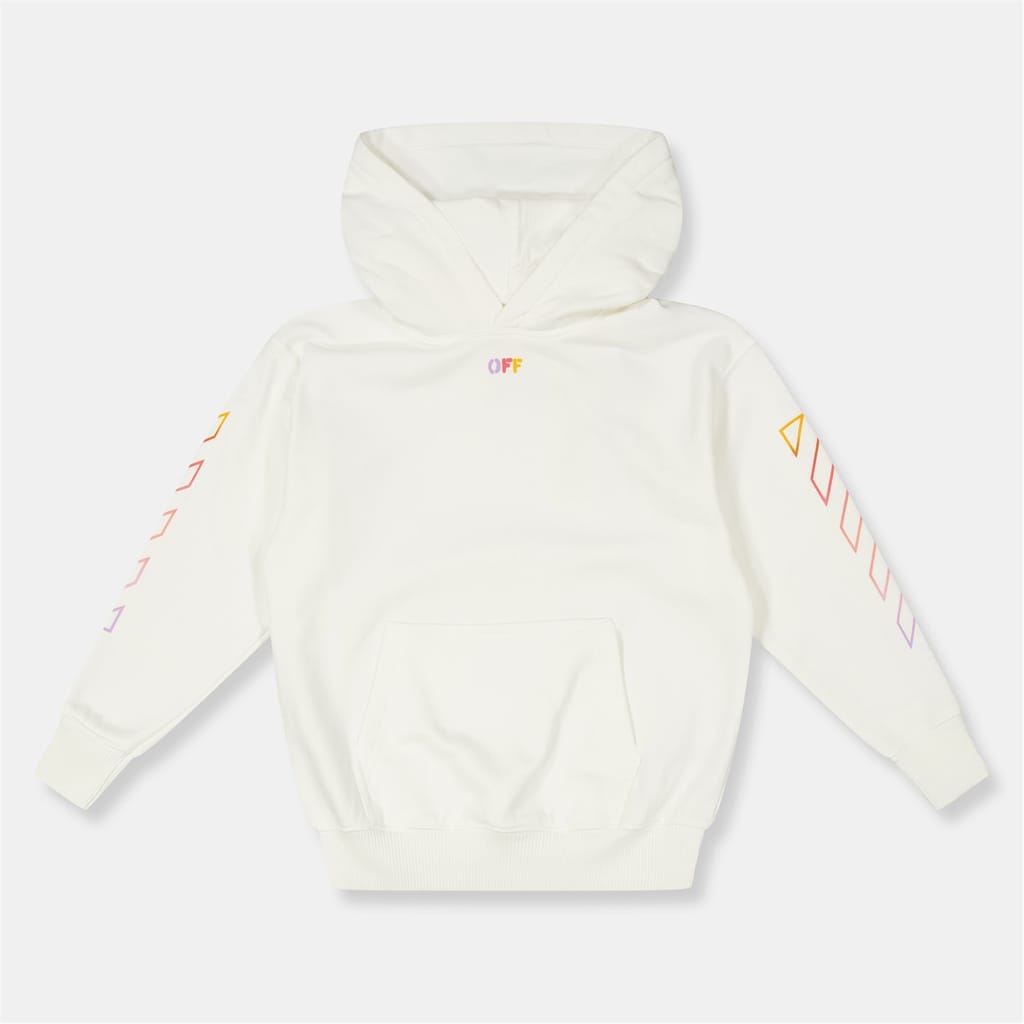 This Off White top features a hooded neck and long sleeves, offering a regular fit. The ribbed cuffs add a touch of detail, while the graphic print and logo embellishments enhance its casual appeal. A practical pocket completes the design, making it a versatile addition to any wardrobe. -