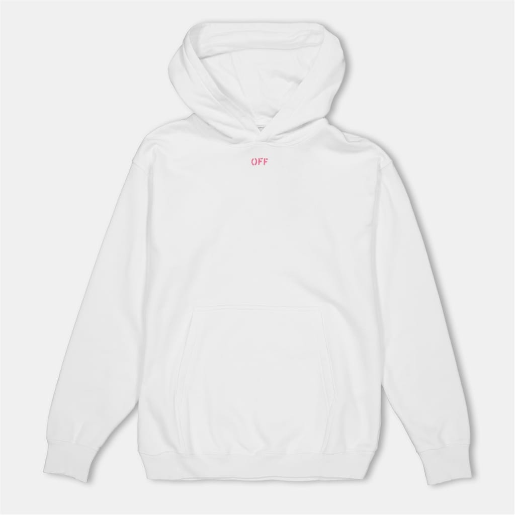 This Off White top features a hooded neck and long sleeves with ribbed cuffs. The regular fit and solid pattern offer a classic look, while the logo embellishment adds a distinctive touch. -