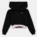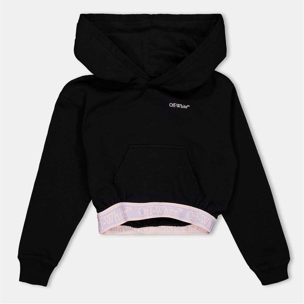 Discover Off White's cropped top, featuring a hooded neck and long sleeves. This relaxed fit piece is designed with ribbed cuffs and a solid pattern. The top is embellished with a logo, adding a distinctive touch to its minimalist design. -