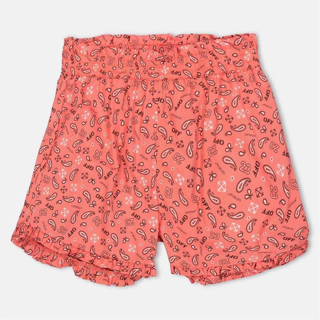 These Off-White shorts feature a distinctive bandana print, perfect for a casual look. Designed with an elasticated waistband for comfort, they are part of the casual collection. The shorts are embellished with a logo, adding a touch of brand identity to the bermuda style. -