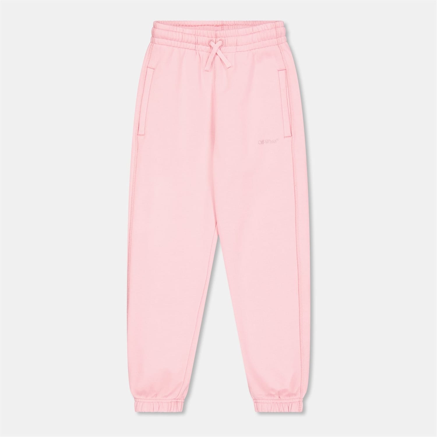 Off White joggers feature a drawstring closure and a cuffed leg design. These athletic joggers are adorned with a logo embellishment, offering a stylish and comfortable option for casual wear. -
