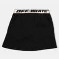 This Off-White mini skirt is a stylish addition to your casual collection. Featuring a relaxed fit and an A-line silhouette, it offers both comfort and a modern look. The skirt is adorned with a distinctive logo embellishment, adding a touch of brand identity to your ensemble. -