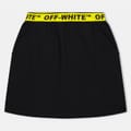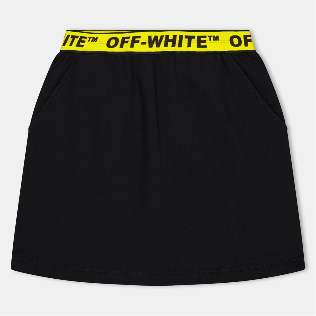 This Off-White mini skirt is a stylish addition to your casual collection. Featuring an A-line silhouette, it offers a regular fit with an elasticated waistband for comfort. The skirt is adorned with a logo embellishment, adding a touch of brand identity to the design. -