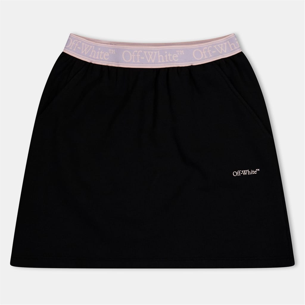This Off-White mini skirt is a stylish addition to your casual collection. Featuring a relaxed fit and an elasticated waistband, it offers comfort and ease of wear. The A-line design is complemented by a distinctive logo embellishment, adding a touch of brand identity to the piece. -