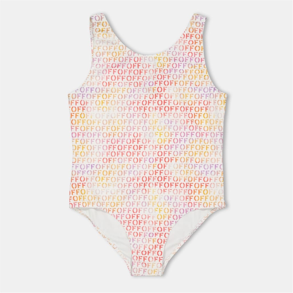 Discover the Off White one-piece swimwear, featuring an all-over logo pattern and distinctive lettering graphic. This stylish piece combines modern design with iconic branding, making it a standout choice for your swimwear collection. -