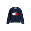 This Tommy Hilfiger heritage top is crafted from knit fabric, perfect for winter. It features a crew neck and long sleeves with a drop shoulder design. The regular fit is complemented by ribbed cuffs, collar, and hem. The top is adorned with an embroidered logo and logo print, adding a distinctive touch. -