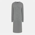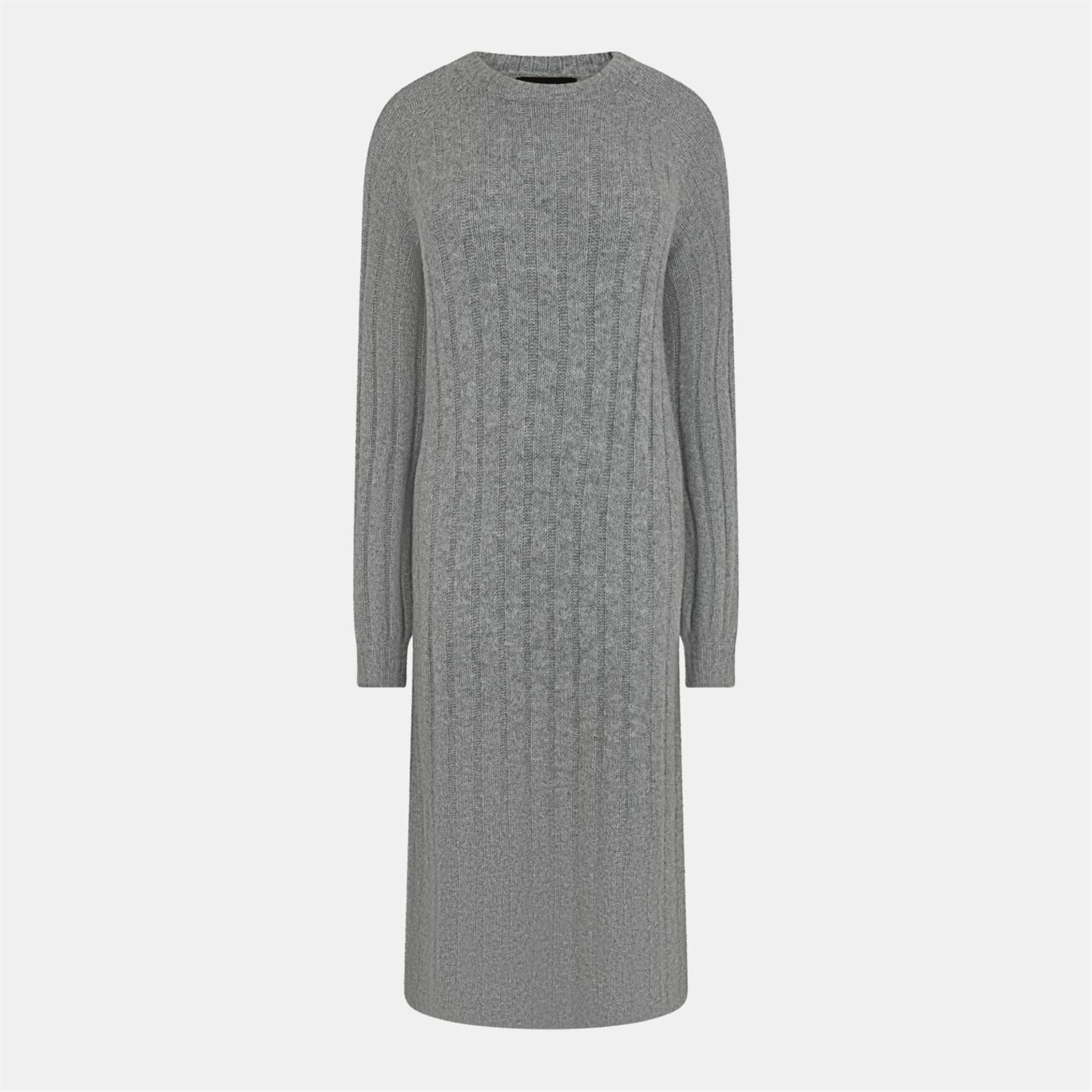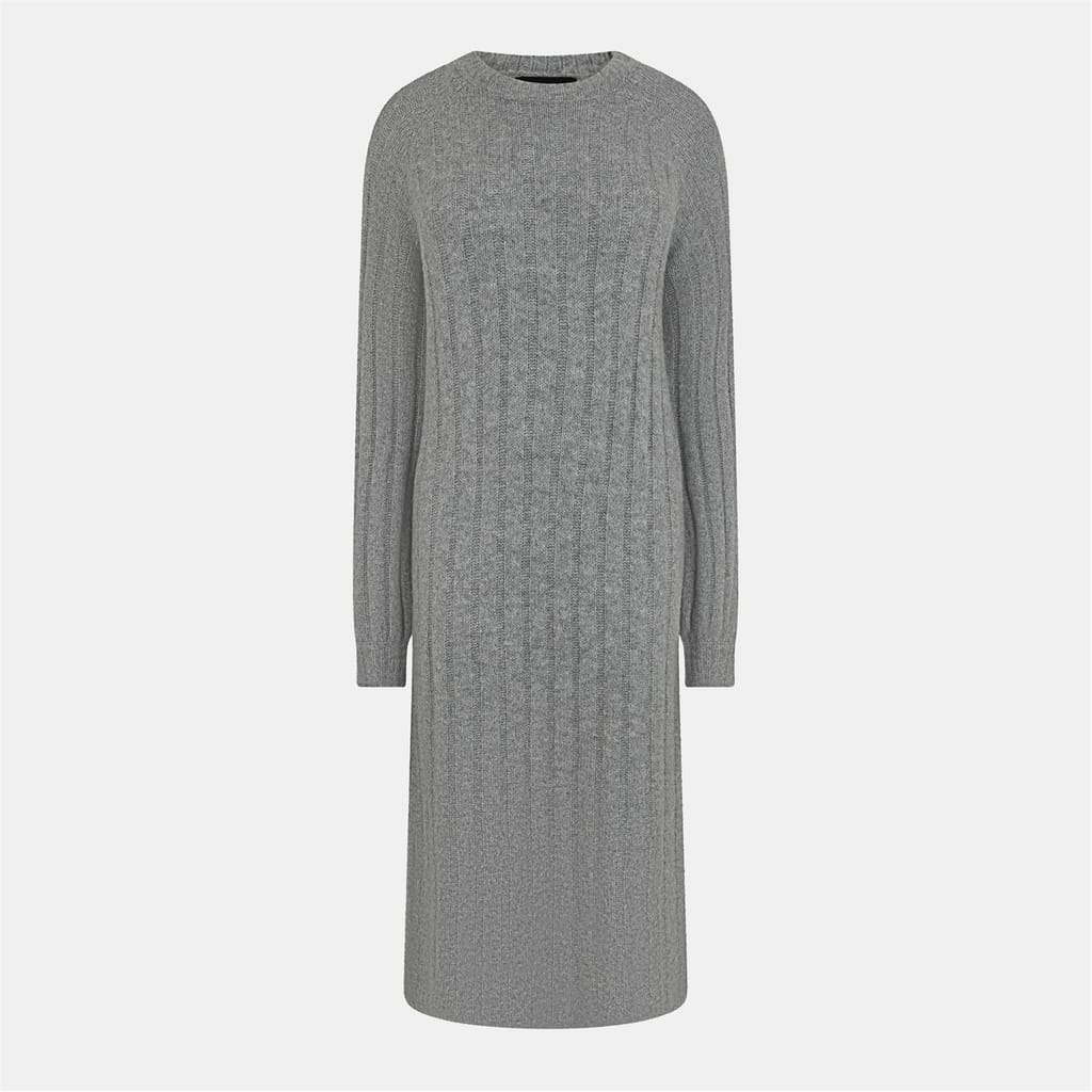 This Pieces midi sweater dress features a crew neck and a slim fit, offering a sleek silhouette. The ribbed pattern and ribbed detail add texture and interest, while the straight hem provides a clean finish. Perfect for cooler days, this dress combines comfort and style effortlessly. -