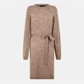 This Pieces midi sweater dress is perfect for casual occasions. Featuring a heathered pattern, it has a crew neck and long sleeves. The dress is designed with a ribbed hem and a tie waist for added style. -