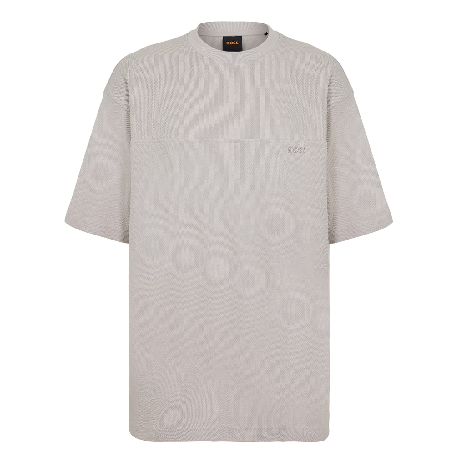 This Boss top features a regular fit with a crew neck and short sleeves. The drop shoulder design and ribbed collar add a touch of style, while the straight hem ensures a clean finish. The solid pattern is complemented by an embroidered logo, offering a subtle brand touch. -