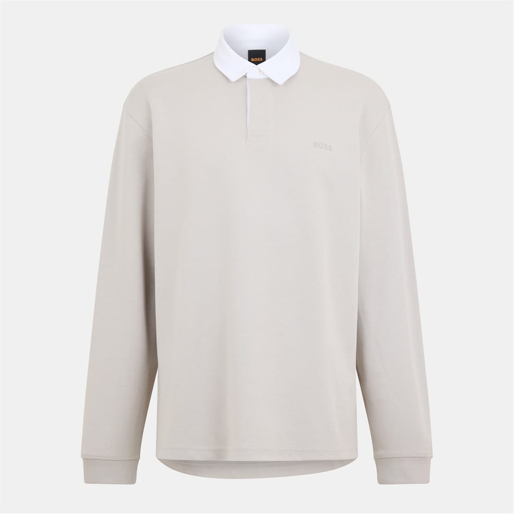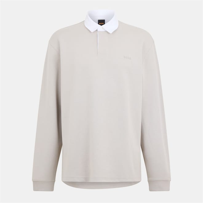This Boss top features a classic polo collar and long sleeves with ribbed cuffs. Designed in a regular fit, it showcases a solid pattern and a straight hem, offering a timeless and versatile look. -