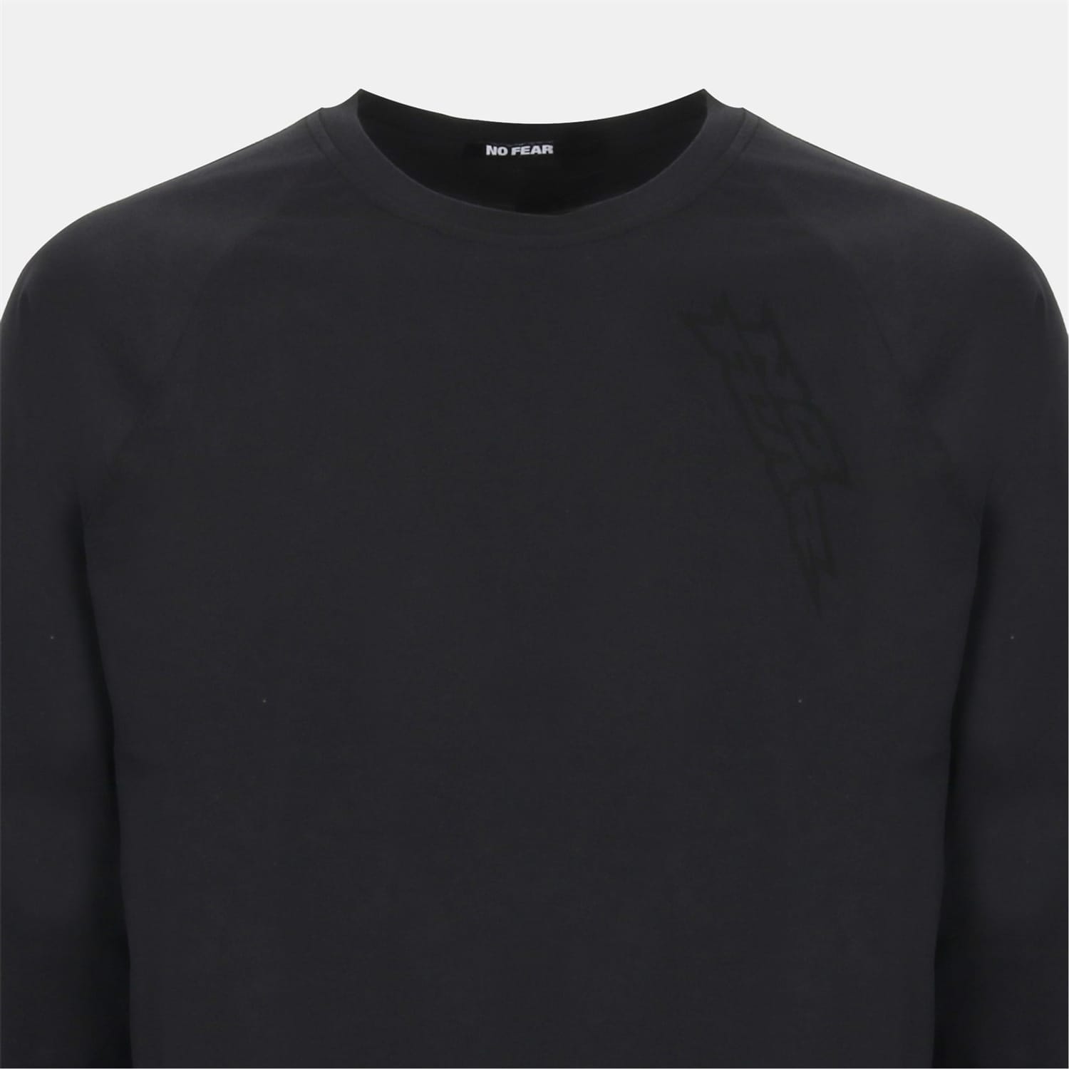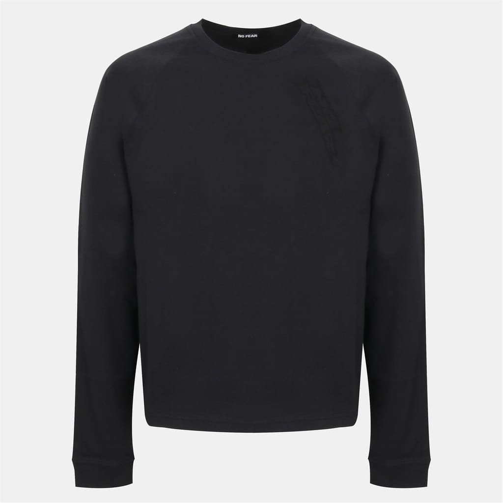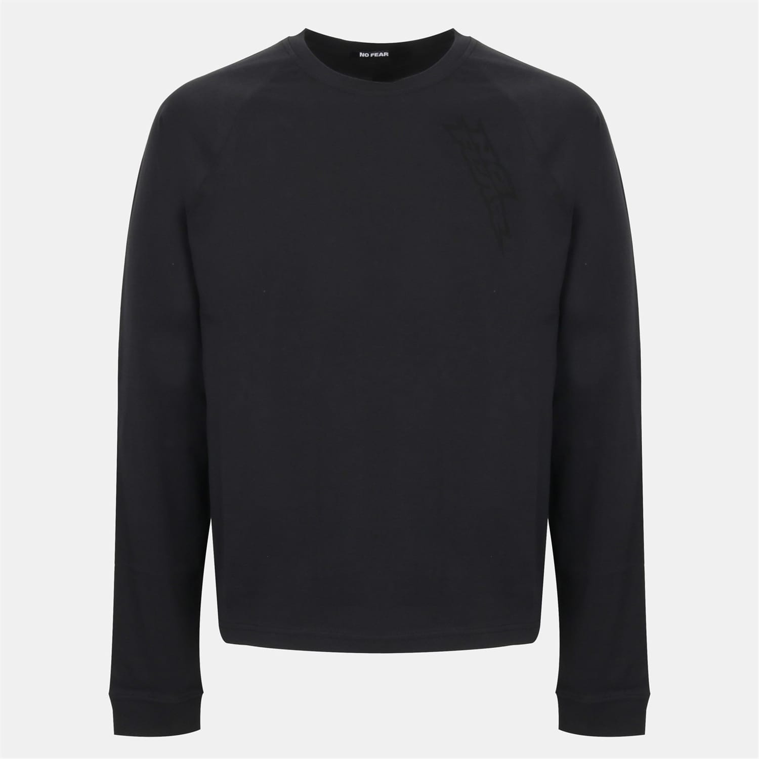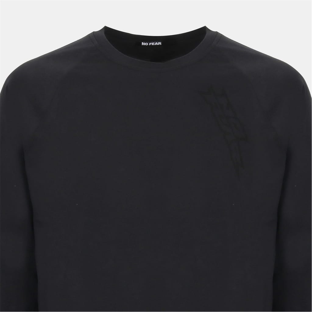 This No Fear top is a casual essential featuring a regular fit and a crew neck. The long raglan sleeves with ribbed cuffs add a touch of style, while the curved hem provides a modern silhouette. The solid pattern is complemented by a subtle logo embellishment, making it a versatile addition to any wardrobe. -