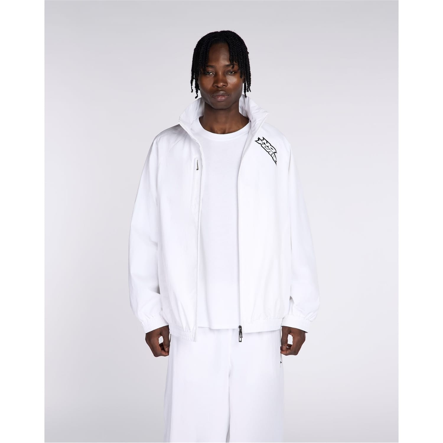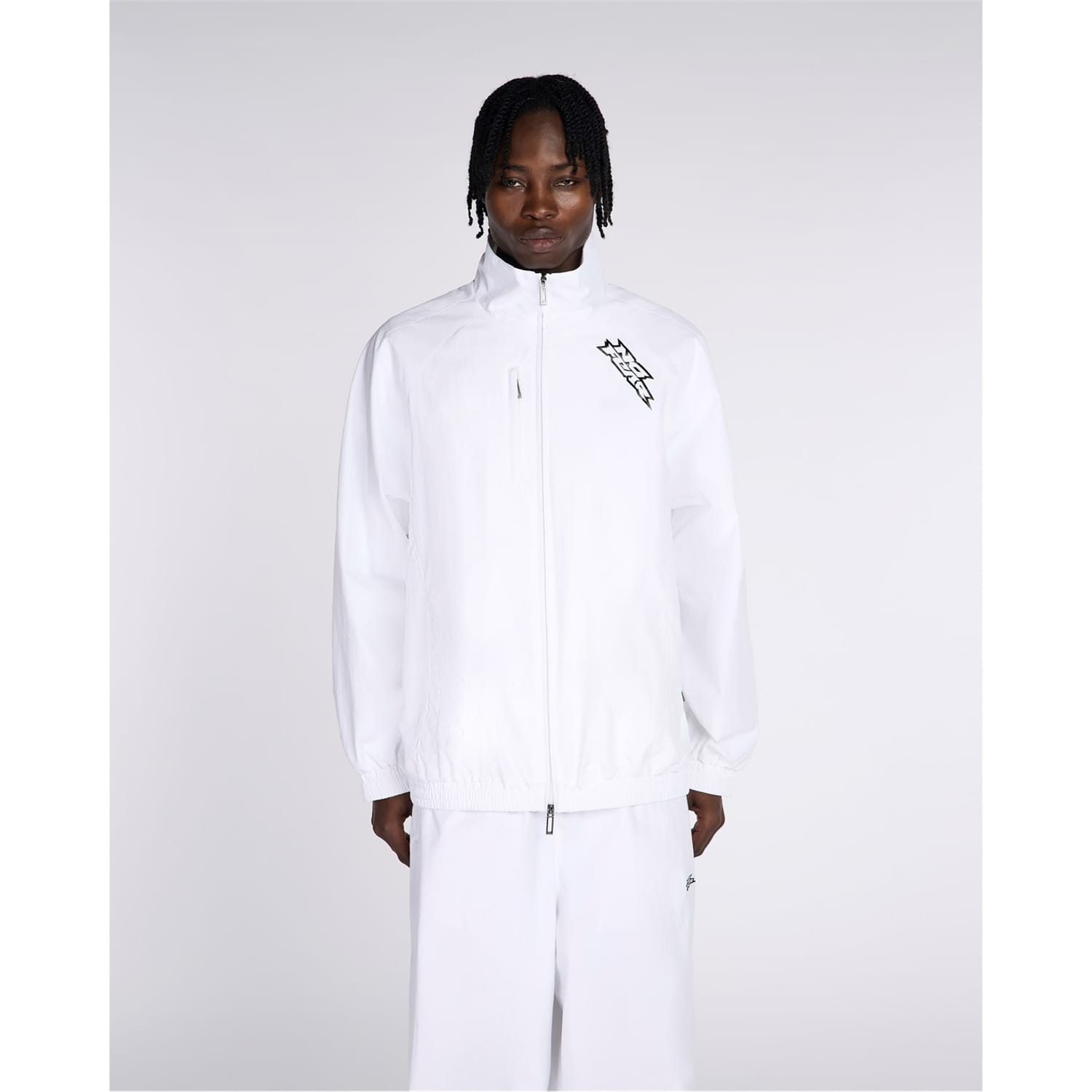 This No Fear top features a relaxed fit with long raglan sleeves and a high collar. The funnel neck and front zipper closure add functionality, while the elasticated cuffs and hem provide comfort. Embellished with a front pocket and logo, the logo print pattern enhances its style. -
