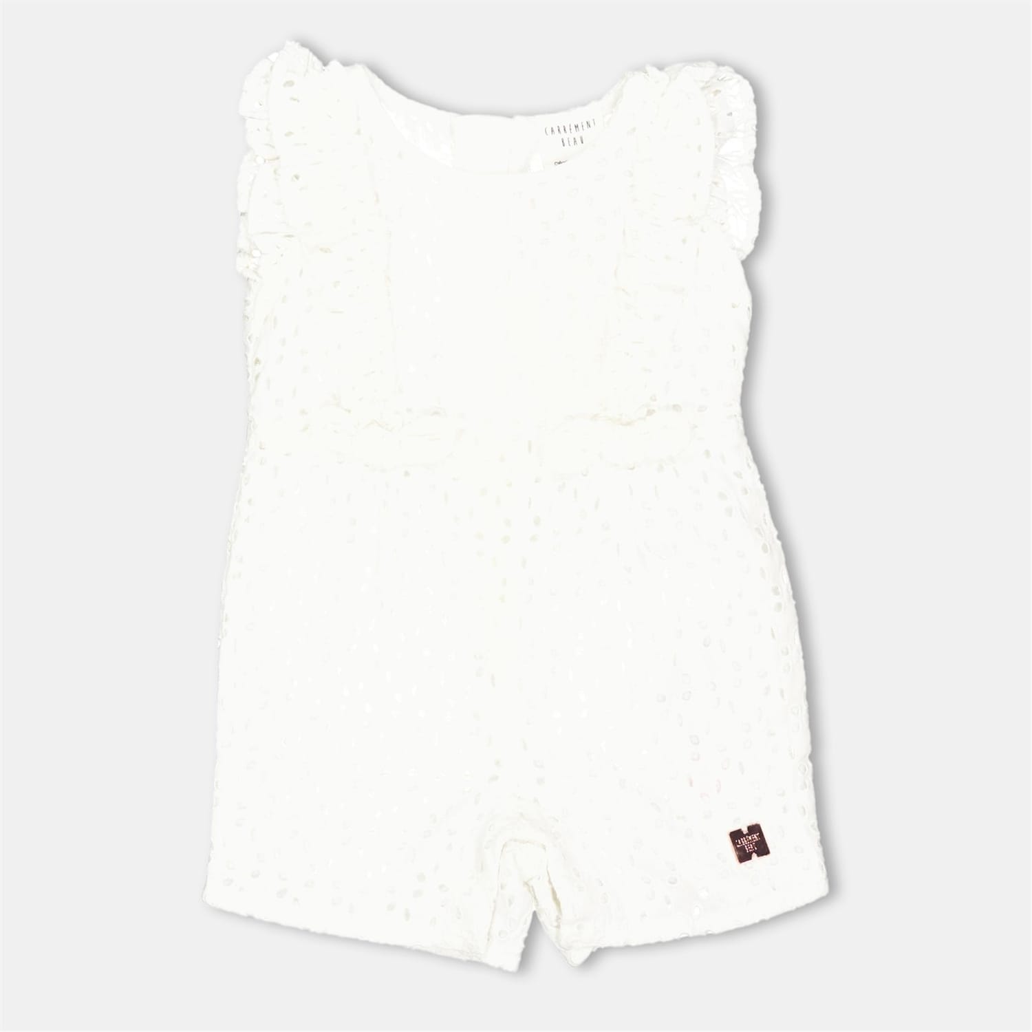 Discover the charm of Carrement Beau's textured playsuit, designed for a relaxed fit. This sleeveless romper features delightful ruffle sleeves, adding a playful touch to its casual collection. Perfect for those seeking a blend of comfort and style. -