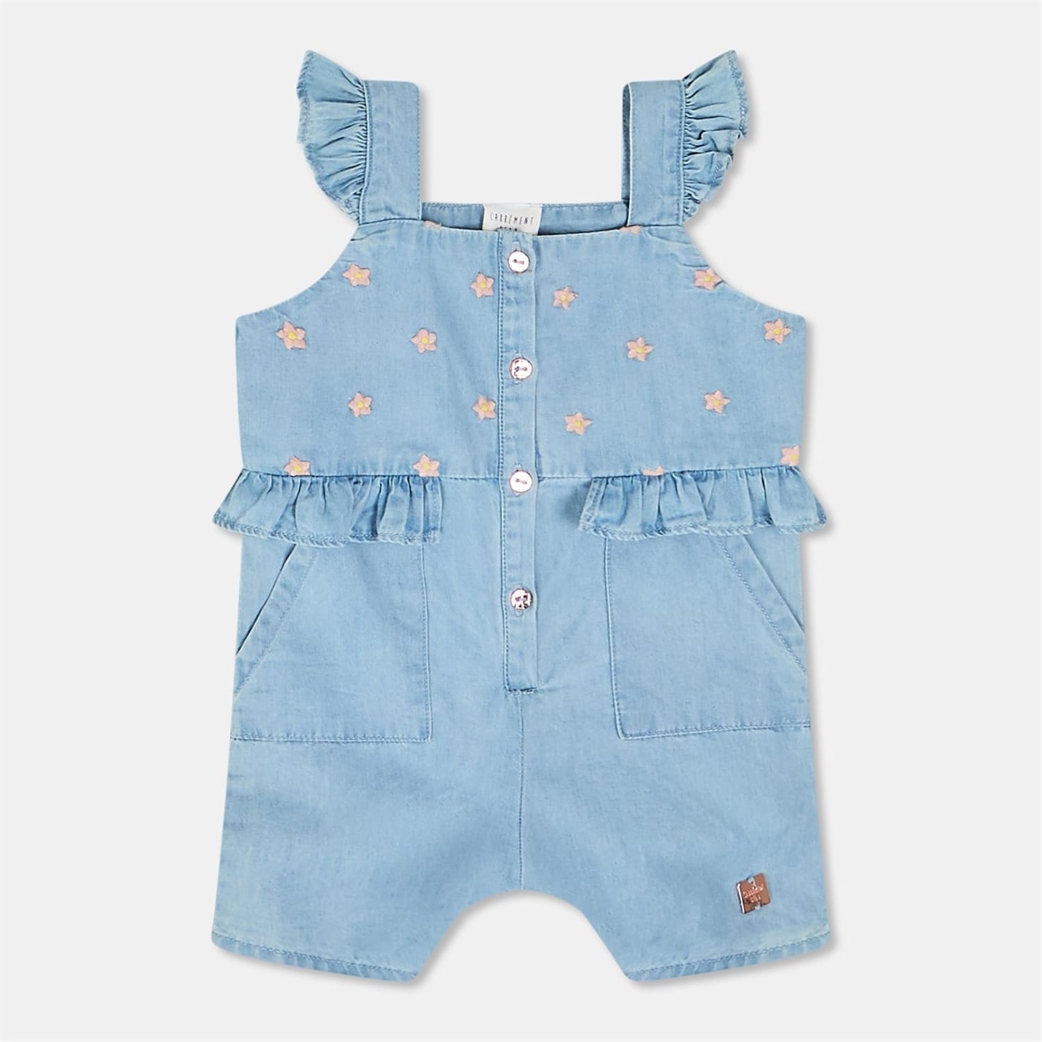 Discover the charm of Carrement Beau's sleeveless playsuit, featuring a delightful star pattern. This regular fit romper is adorned with ruffle sleeves and embroidered embellishments, adding a touch of elegance. Practical snap button closure and pockets enhance its functionality, making it a perfect choice for casual occasions. -