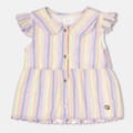 This Carrement Beau top features a regular fit with a sleeveless design and ruffle sleeves, perfect for a casual look. The club collar adds a touch of elegance, while the button closure ensures a secure fit. The striped pattern and logo embellishment complete the stylish design, making it a versatile addition to any wardrobe. -