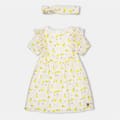 This Carrement Beau A-line dress features a charming floral pattern, perfect for adding a touch of elegance to any occasion. The knee-length design is complemented by short ruffle sleeves, offering a playful yet sophisticated look. The straight hemline ensures a clean finish, making it a versatile addition to any wardrobe. -