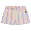 Carrement Beau shorts feature a vertical stripe pattern and a tie closure, offering a casual style perfect for relaxed occasions. The bermuda shorts design is complemented by a subtle logo embellishment, adding a touch of brand identity to the piece. -