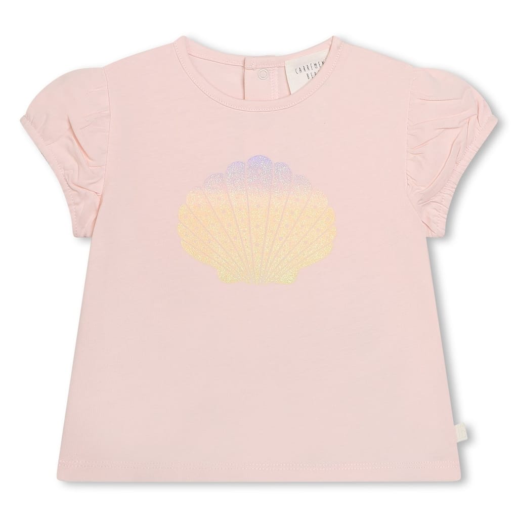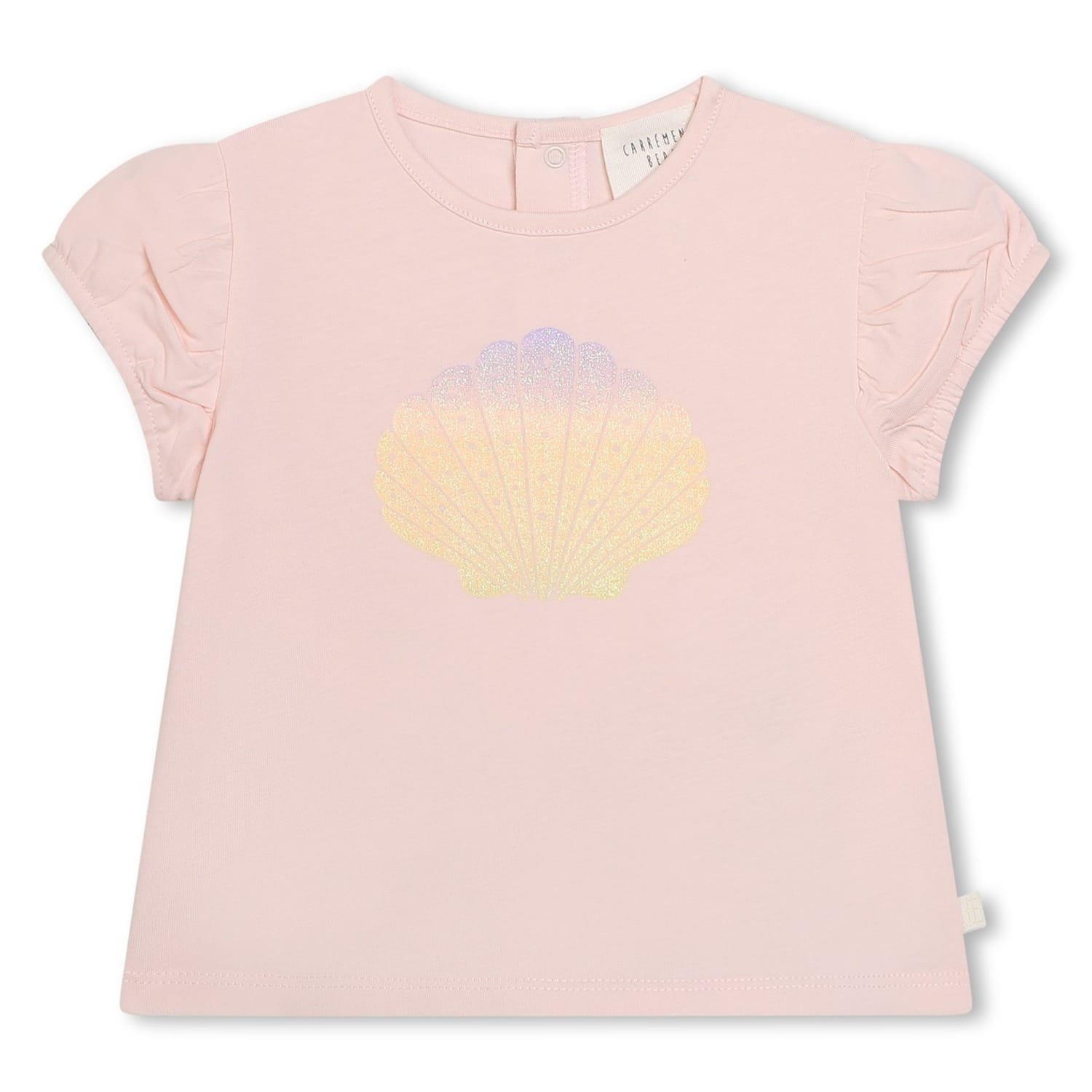 This Carrement Beau top features a regular fit with short puff sleeves and a crew neck. The graphic print is enhanced with a logo and glitter embellishments, adding a touch of sparkle. Perfect for casual collections, this top combines style and comfort effortlessly. -