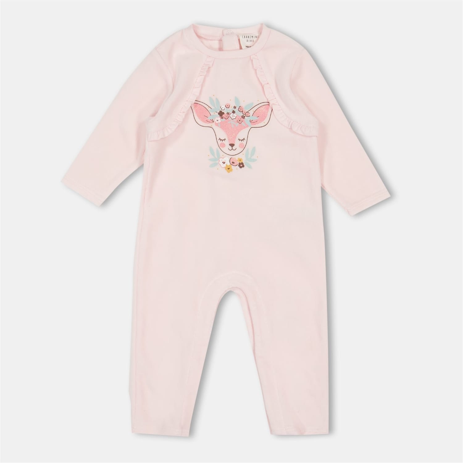 Discover the charming sleepwear from carrement_beau, featuring a delightful onesie design. This regular fit piece is adorned with a floral pattern and playful reindeer graphic, adding a touch of whimsy to bedtime. The ruffle embellishments enhance its appeal, making it a perfect choice for cosy nights. -