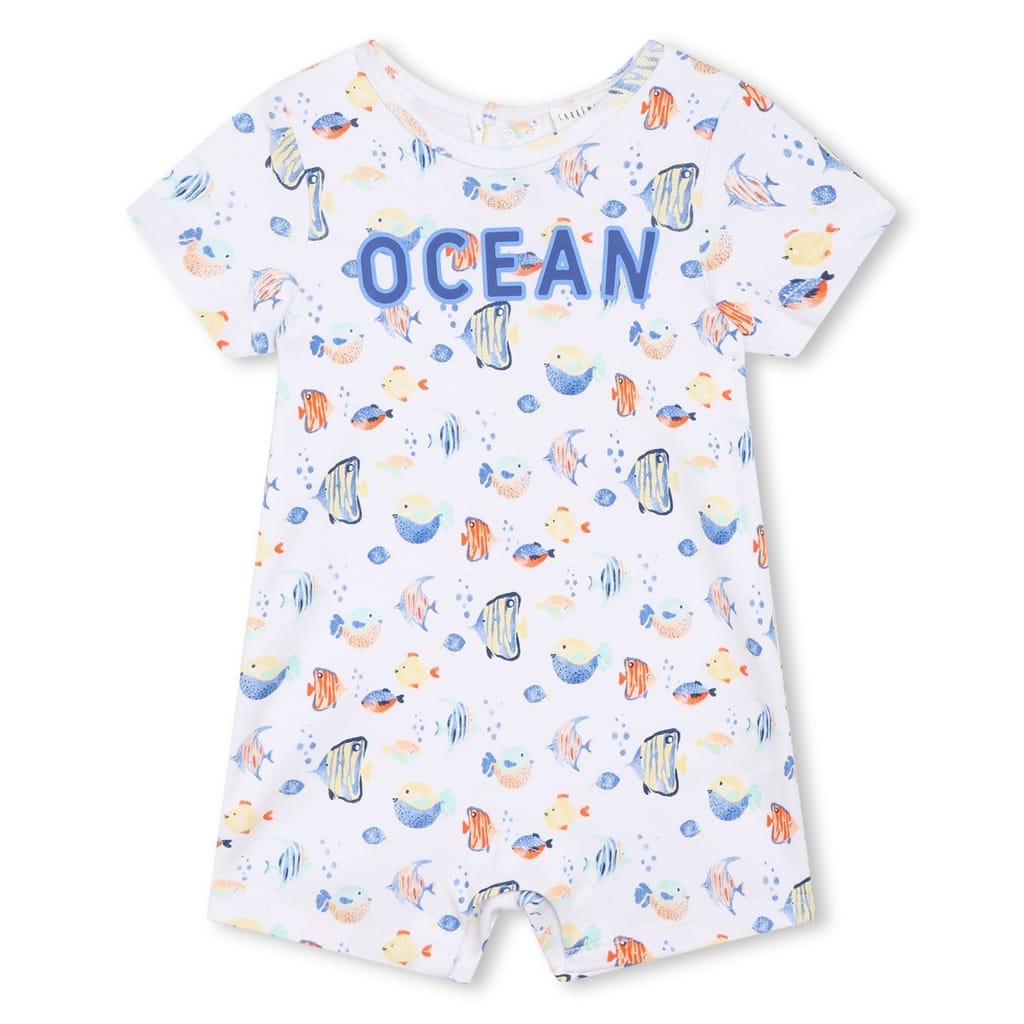 This Carrement Beau playsuit features a charming animal pattern and is adorned with an applique detail. Designed with a crew neck and short plain sleeves, it offers a regular fit for comfort. Perfect for adding a playful touch to any wardrobe. -